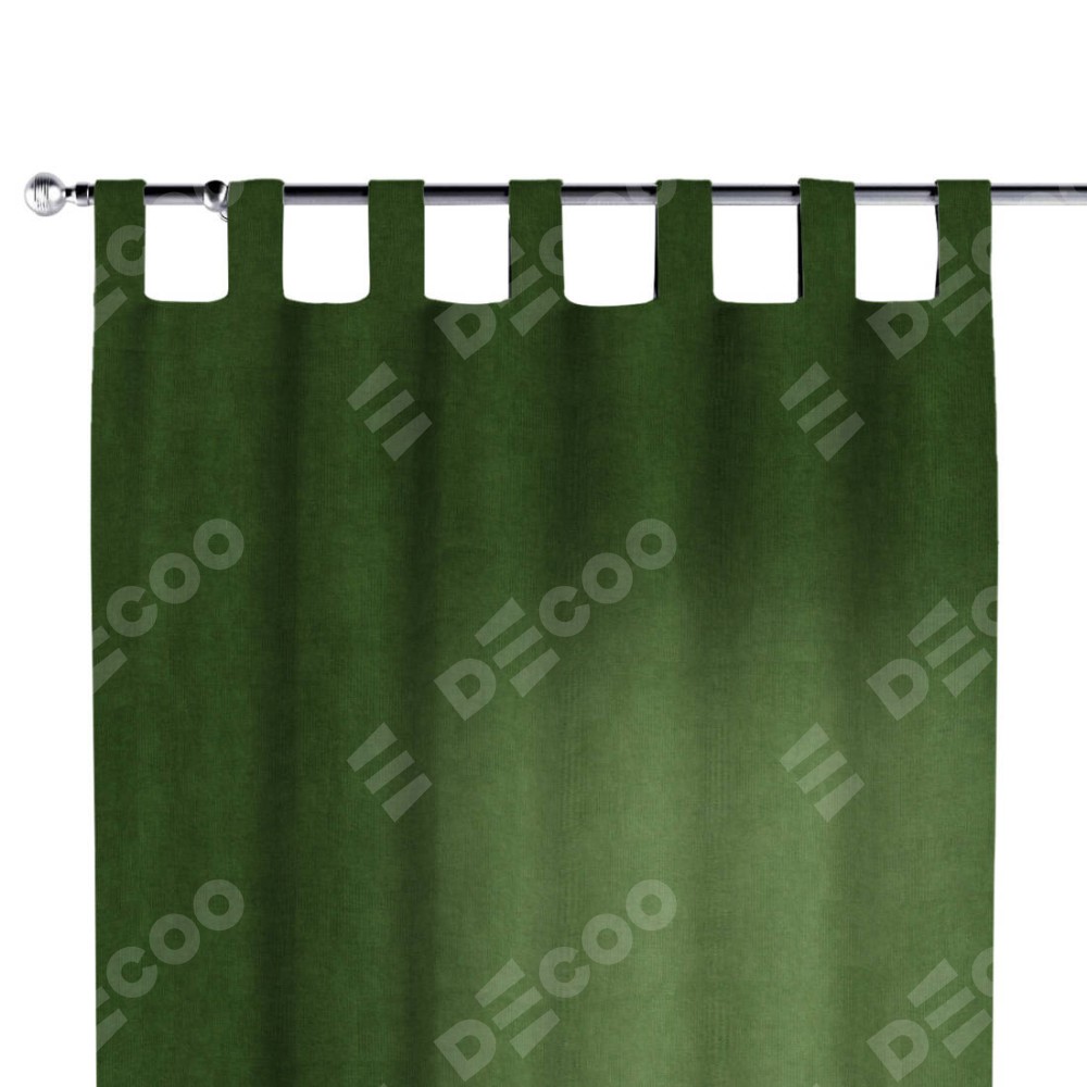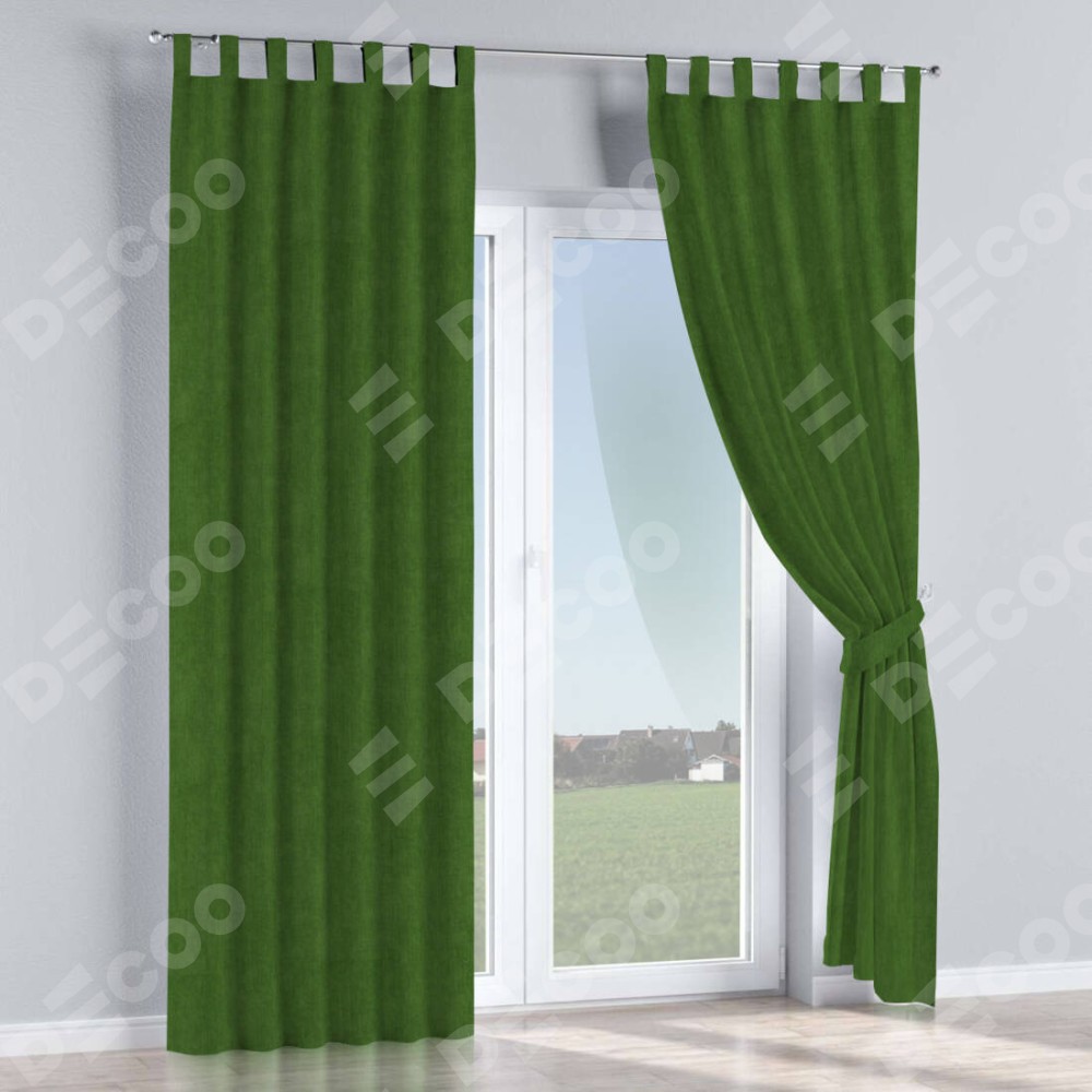 Комплект прямых штор, от производителя «Cortin», пошиты из ткани вельвет тёмно-салатовый, артикул ткани 33805. Данная модель пошита на петлях, комплектуется на выбор круглым карнизом и подходит для монтажа на стену или потолок. Прямые шторы на петлях шьются по стандарту с коэффициентом 1/2 (на 100 см. ширины проёма 200 см. ширины ткани), отличительным преимуществом данной модели является простой способ монтажа. Достаточно повесить ее на трубу и штора готова!