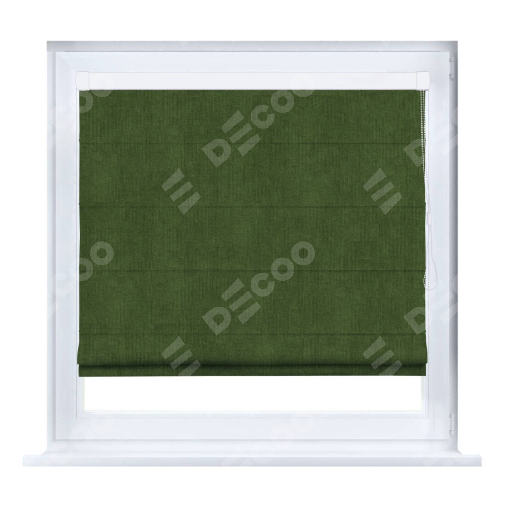 Римская штора производителя «Cortin», устанавливается на створку окна, пошита из ткани вельвет тёмно-салатовый, артикул 33805. Штора шьётся по индивидуальным размерам, для данного типа римской шторы возможная ширина от 35 до 150 см., высота до 250 см.