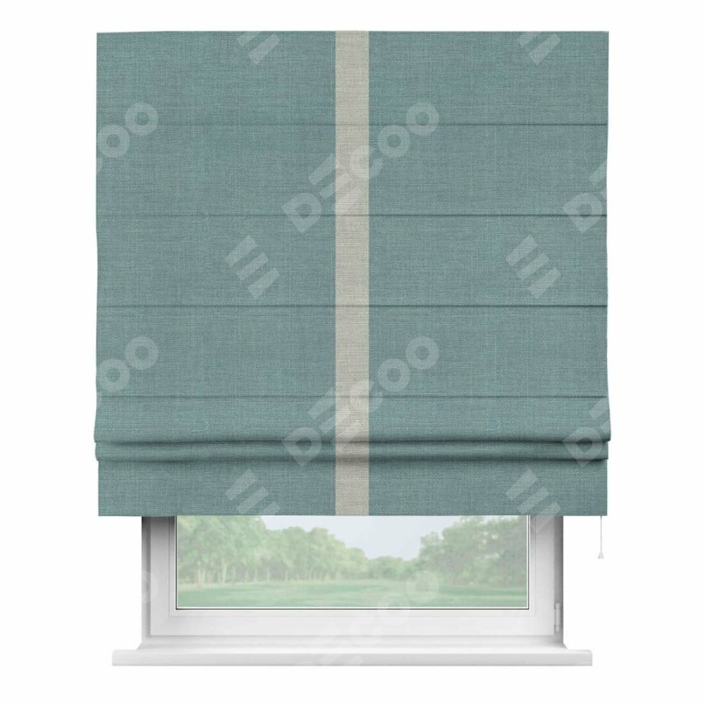 Римская штора «Кортин» с отделкой кантом Хайвэй, для проема, ткань лён голубой