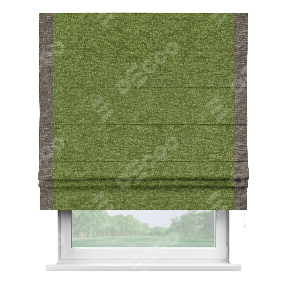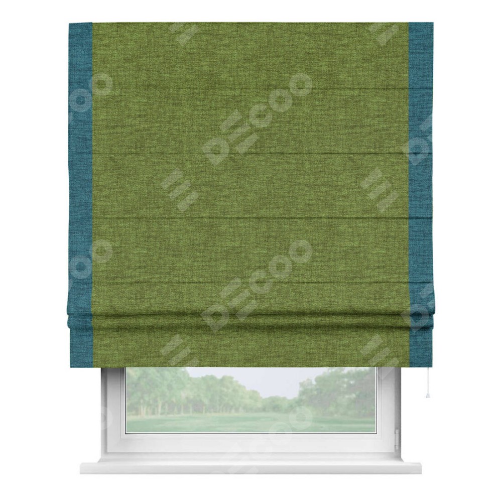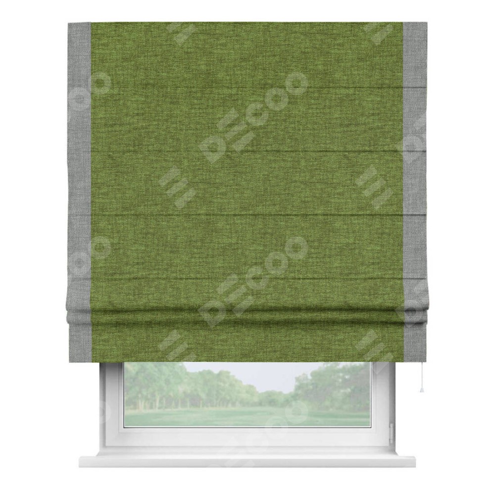 Римская штора «Кортин» с кантом Стрим Дуо, для проема, ткань рогожка димаут, салатовый