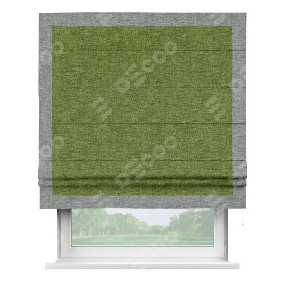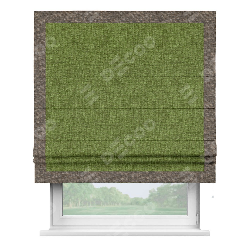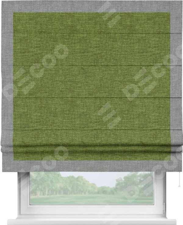 Римская штора «Кортин» с кантом Чесс, для проема, ткань рогожка димаут, салатовый