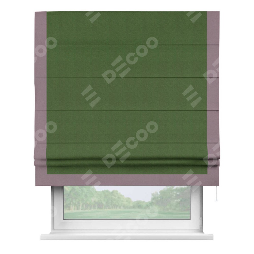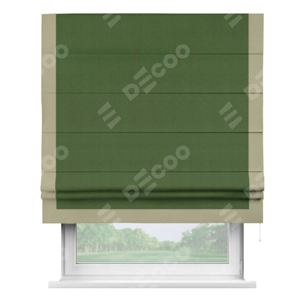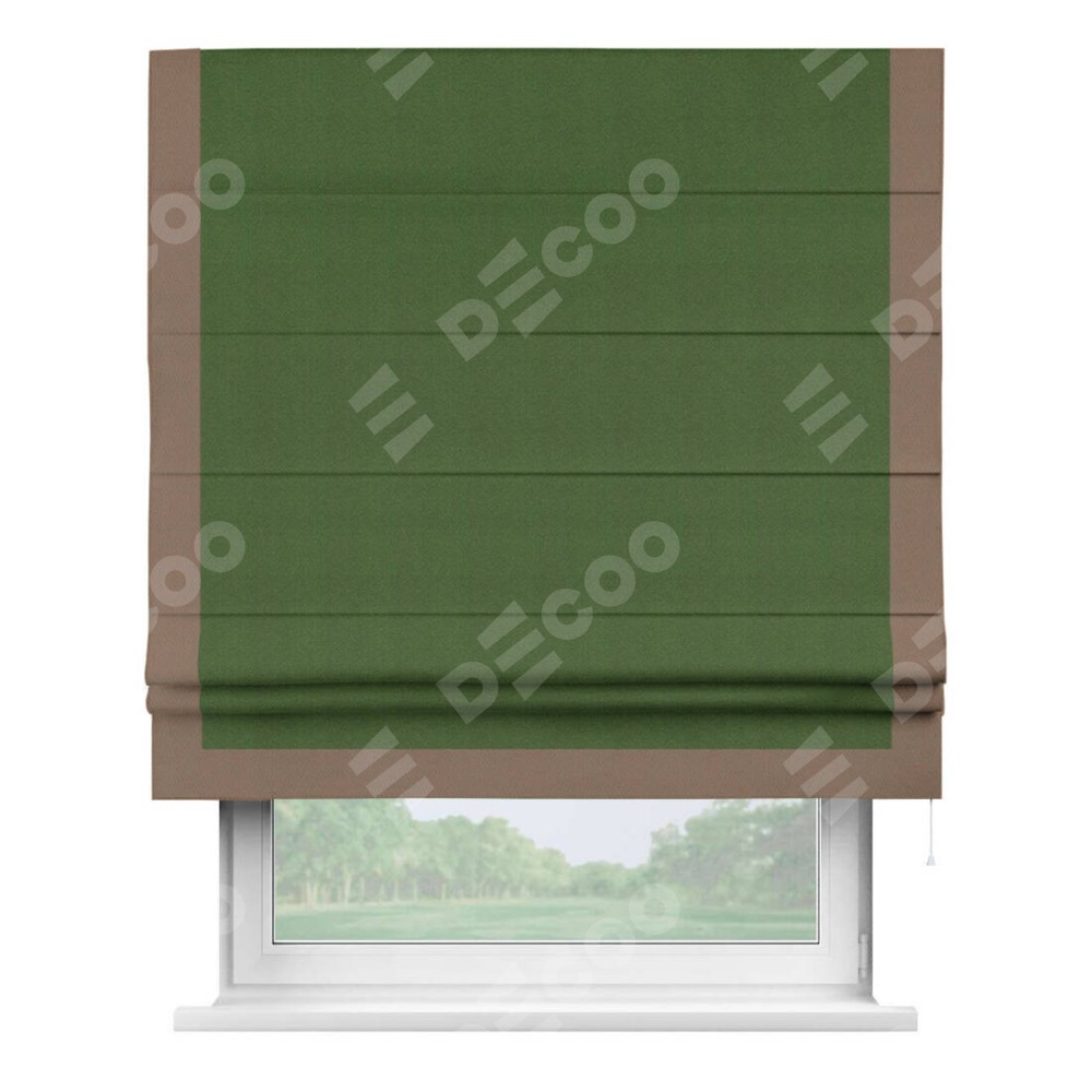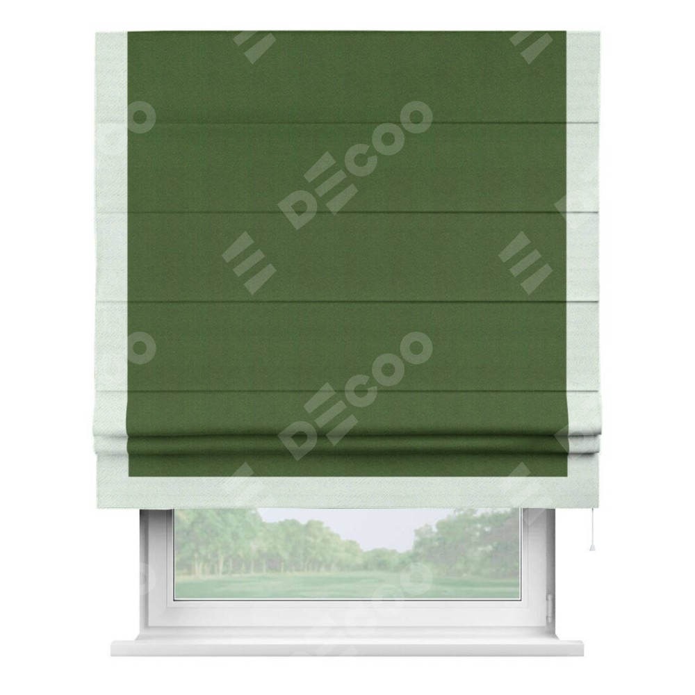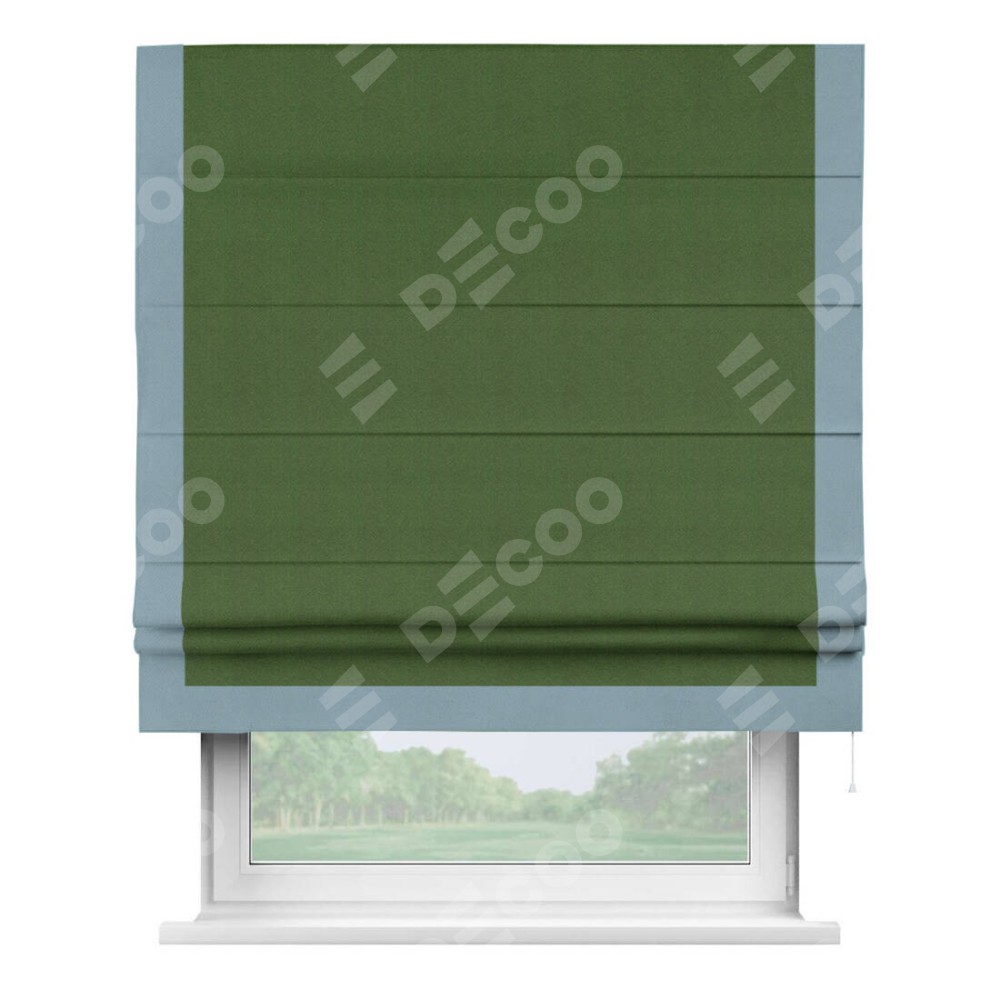 Римская штора «Кортин» с кантом Виктория, для проема, ткань блэкаут однотонный зелёный перламутр