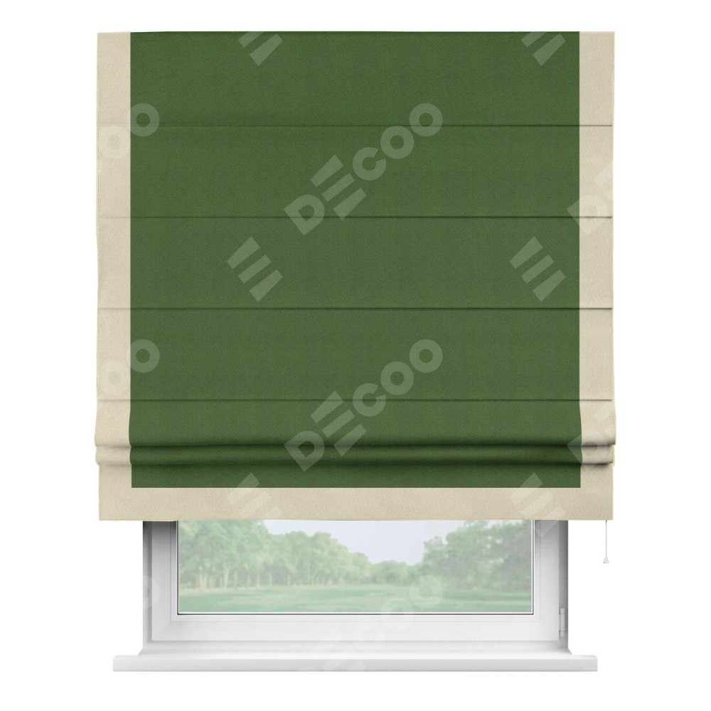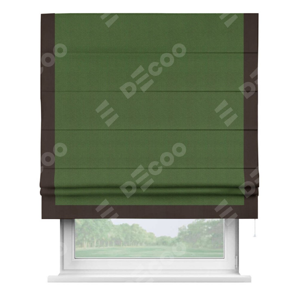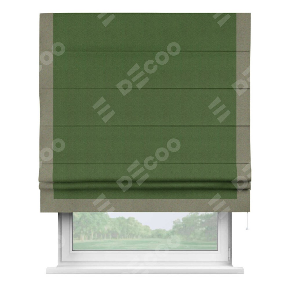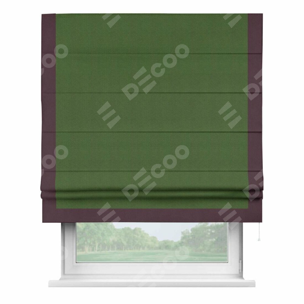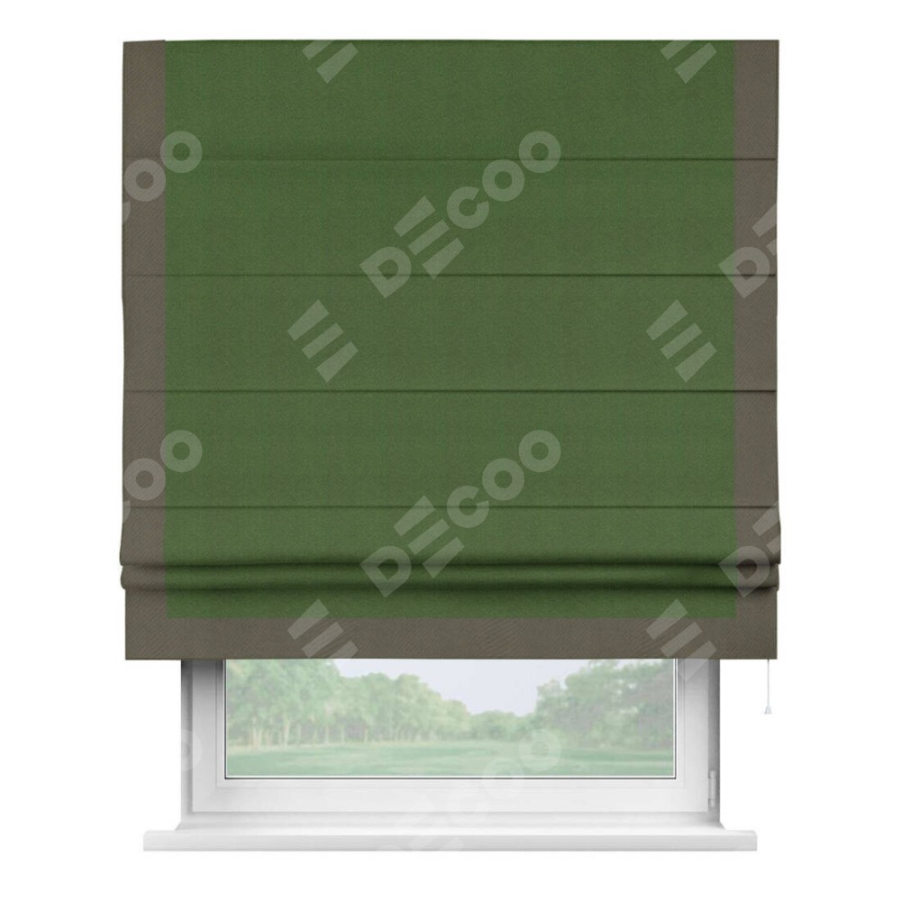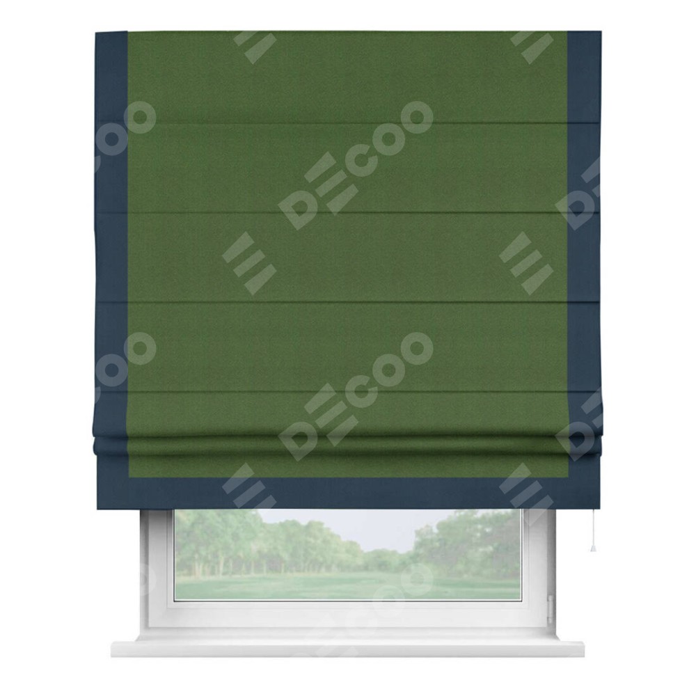 Римская штора «Кортин» с кантом Виктория, для проема, ткань блэкаут однотонный зелёный перламутр