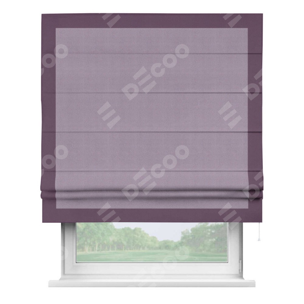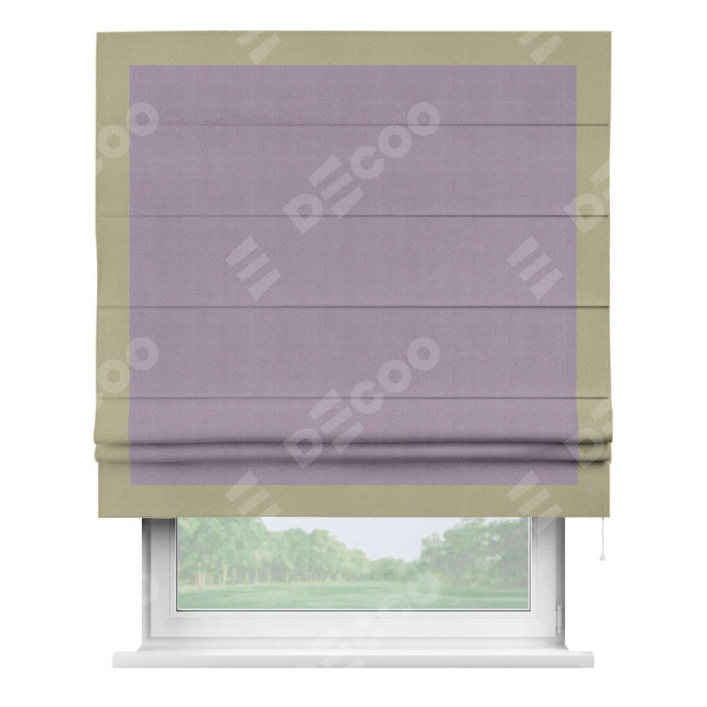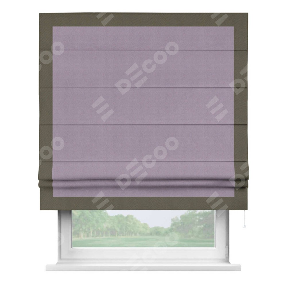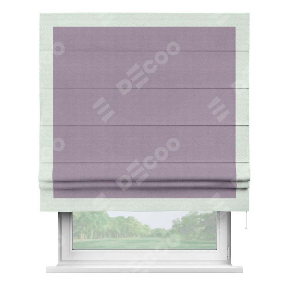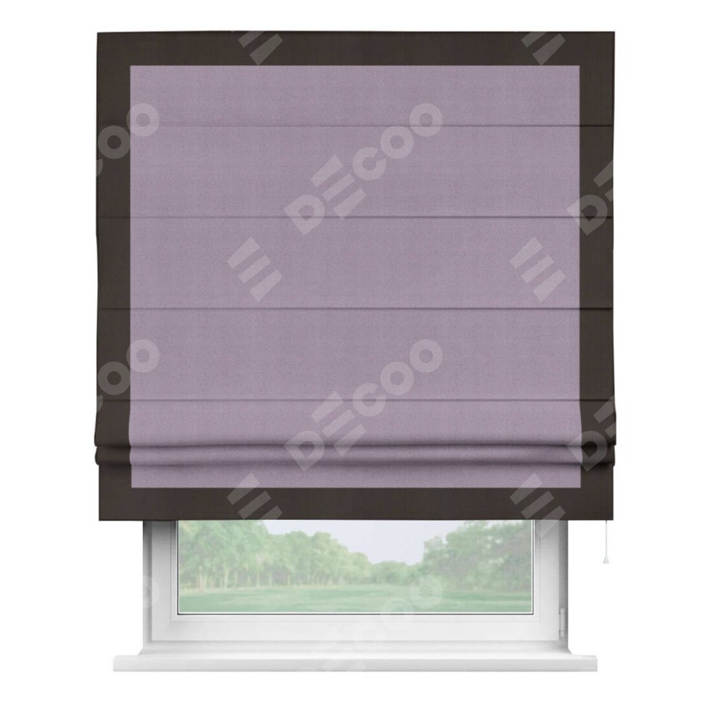 Римская штора «Кортин» с кантом Чесс, для проема, ткань блэкаут однотонный светло-сиреневый