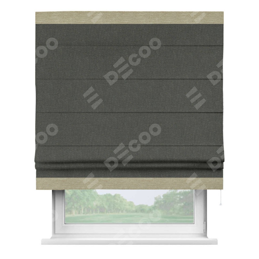 Римская штора «Кортин» с кантом Горизонт, для проема, ткань лён димаут, графитово-серый