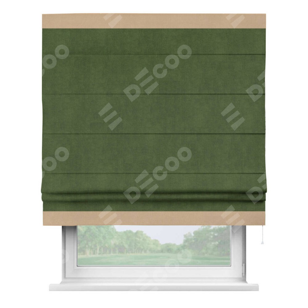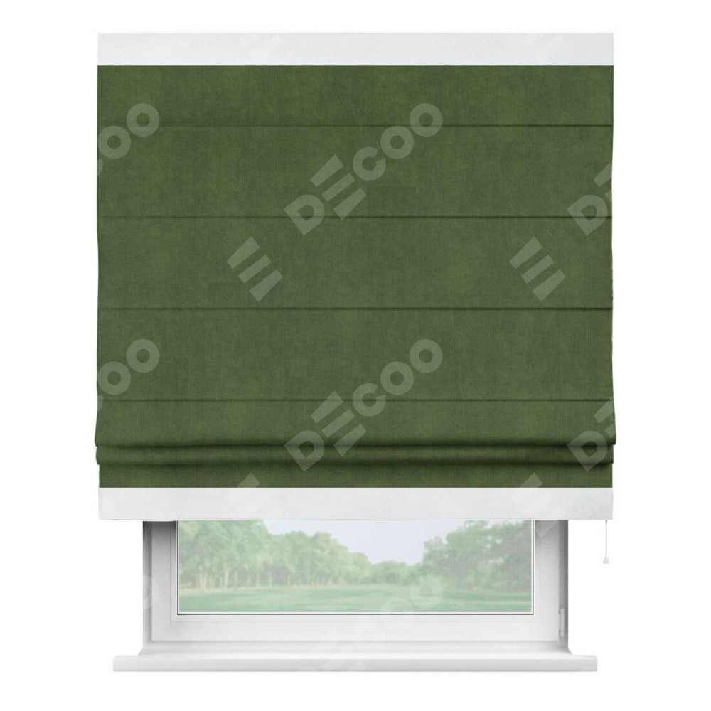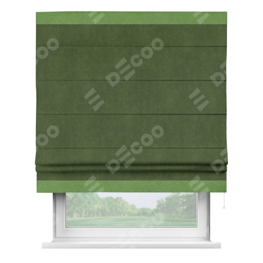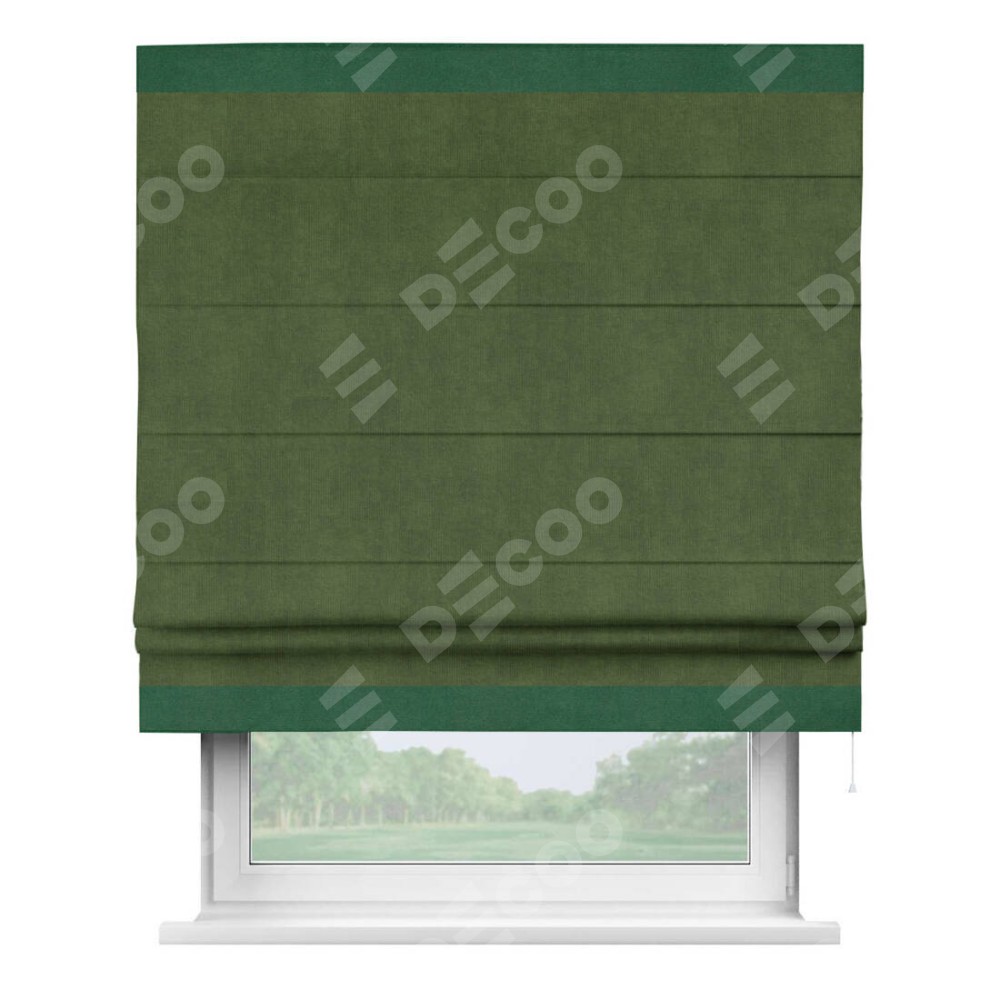 Римская штора «Кортин» с кантом Горизонт, для проема, ткань вельвет тёмно-салатовый
