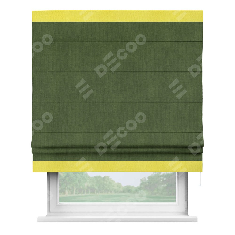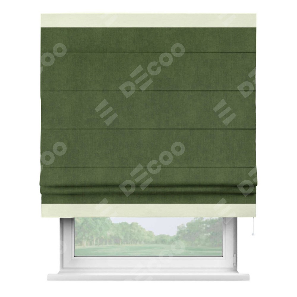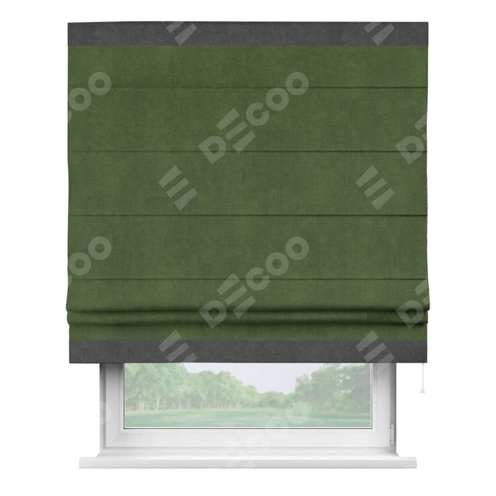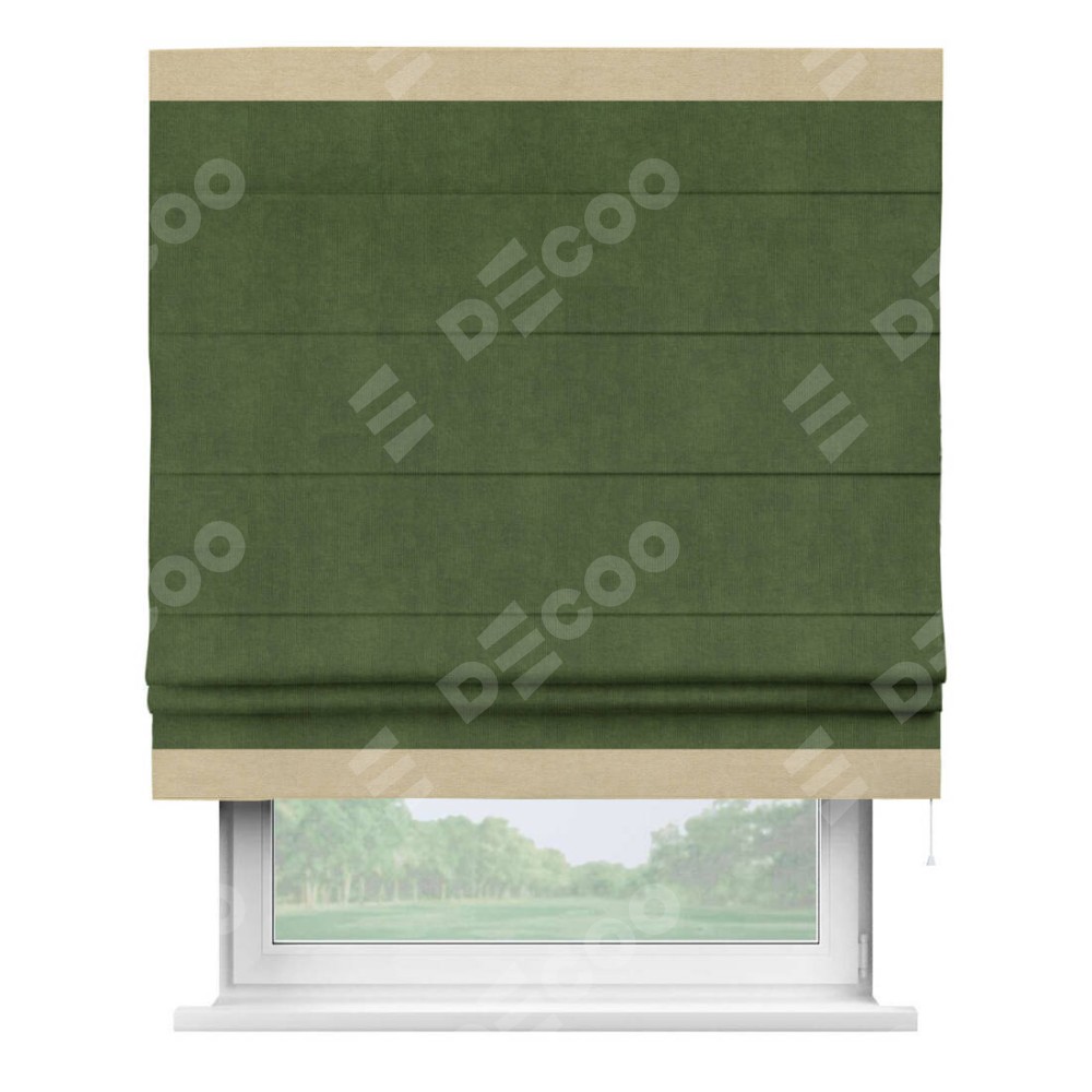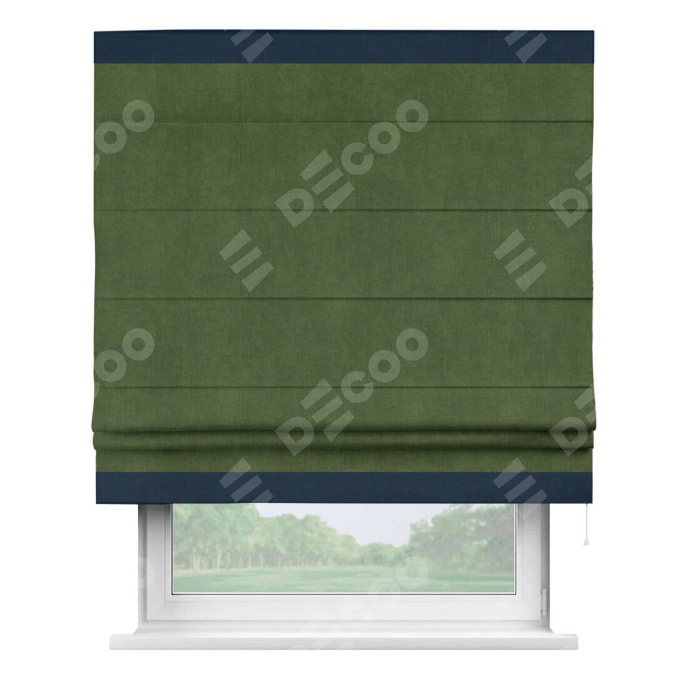 Римская штора «Кортин» с кантом Горизонт, для проема, ткань вельвет тёмно-салатовый
