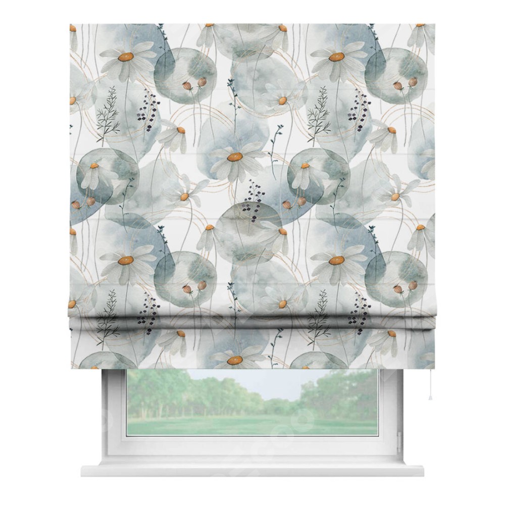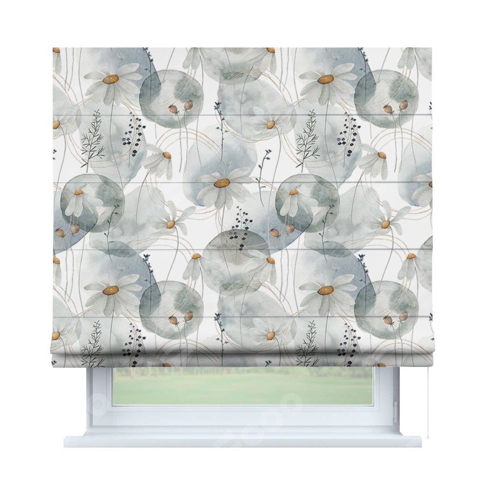 Римская штора «Кортин» для проема «Ромашки акварель»