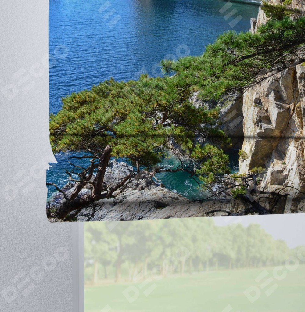 Римская штора на петлях «Море и сосны»