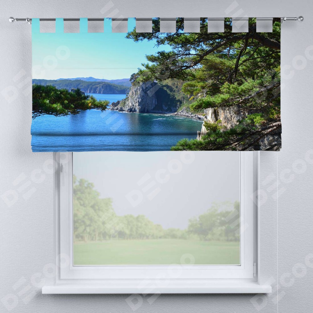 Римская штора производителя «Cortin», используется для проёма, пошита из ткани блэкаут с нанесением сублимационной печати «Море и сосны». Данная модель пошита на петлях, комплектуется на выбор круглым карнизом и подходит для монтажа на стену. Римская штора на петлях имеет простую систему регулировки высоты, отличительным преимуществом данной модели является простой способ монтажа. Достаточно повесить ее на трубу и штора готова!