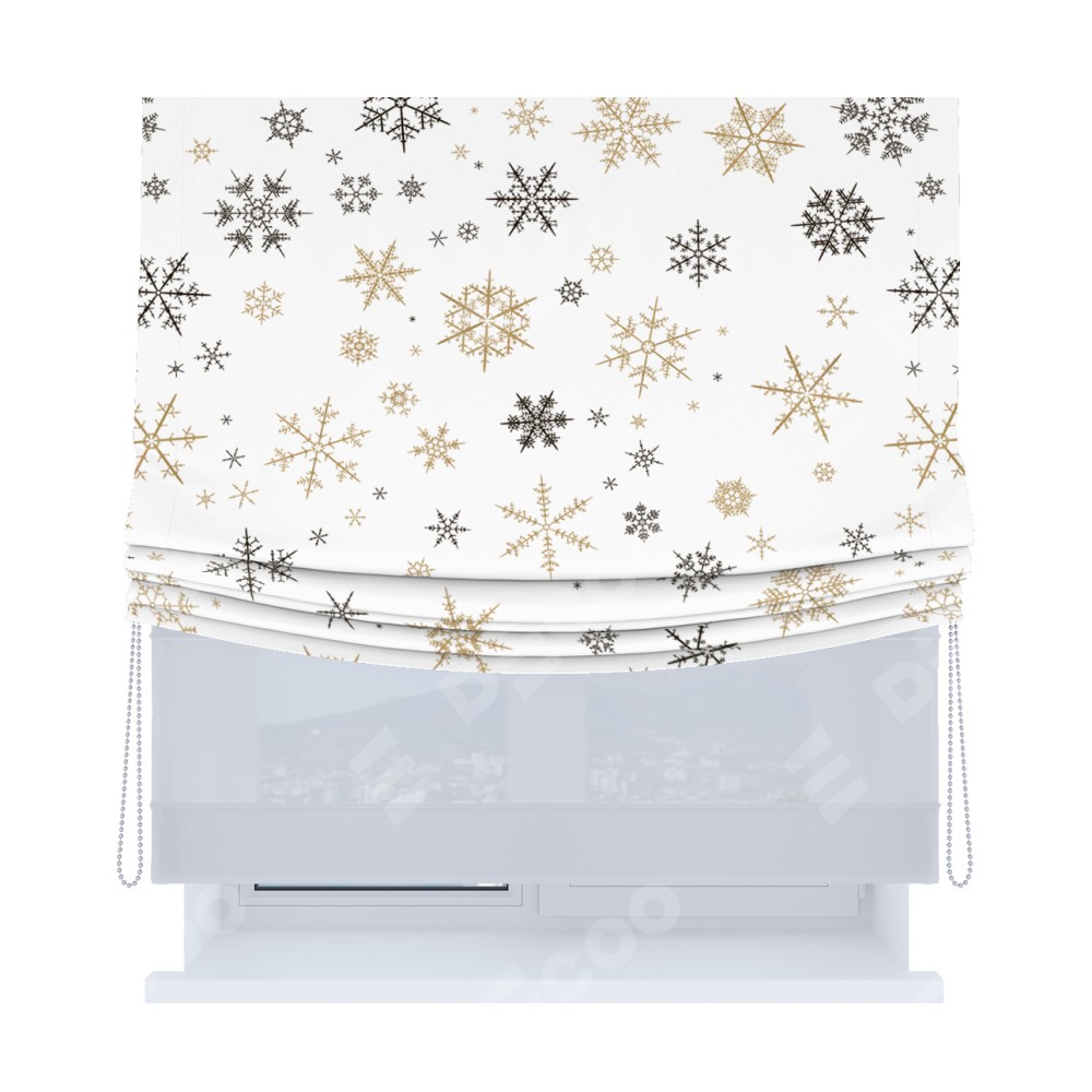 Римская штора день-ночь производителя «Cortin», используется для проёма, пошита из двух полотен, с лицевой блэкаут с нанесением сублимационной печати «Зимняя метель», вторая ткань тюль (по стандарту комплектуется тюль белого цвета артикул V-01). Имеет универсальный механизм и подходит для монтажа: на потолок, на стену и в нишу. Удобное управление каждой шторой отдельно.