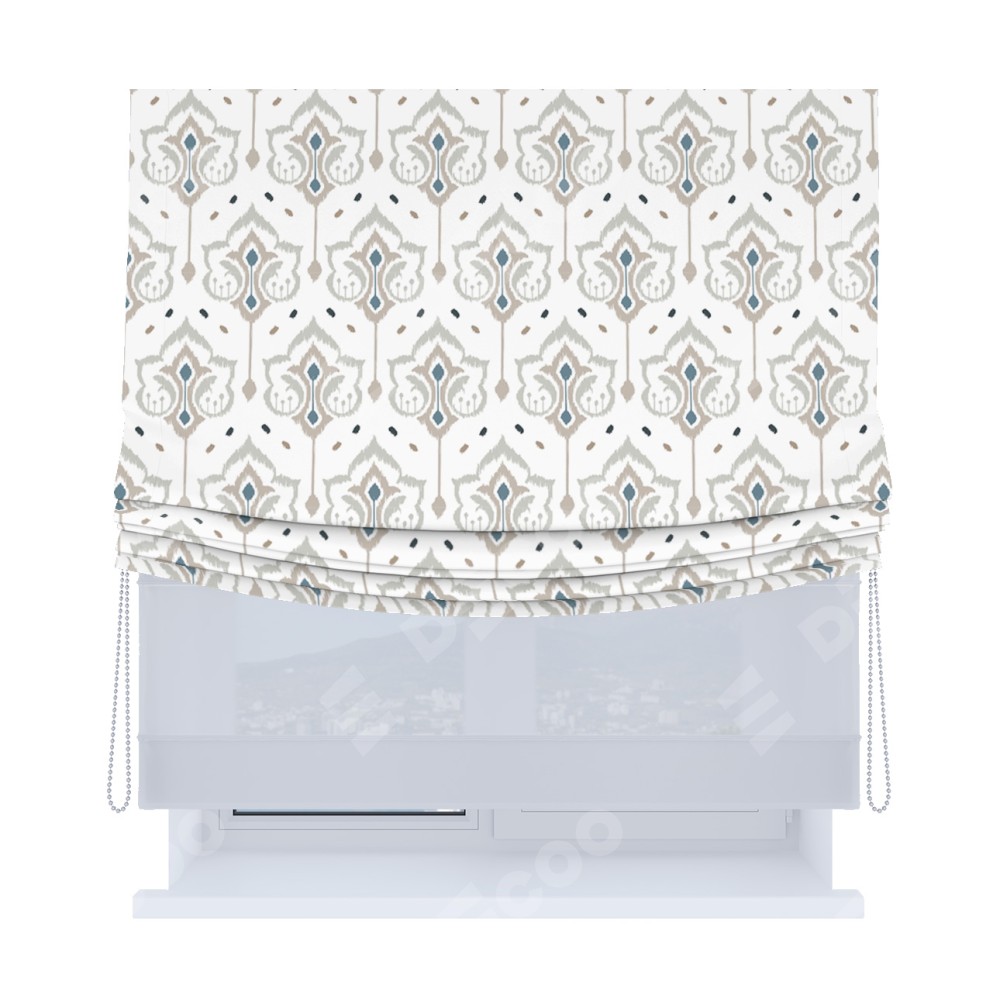 Римская штора «Кортин», день-ночь с мягкими складками, «Икат узор»