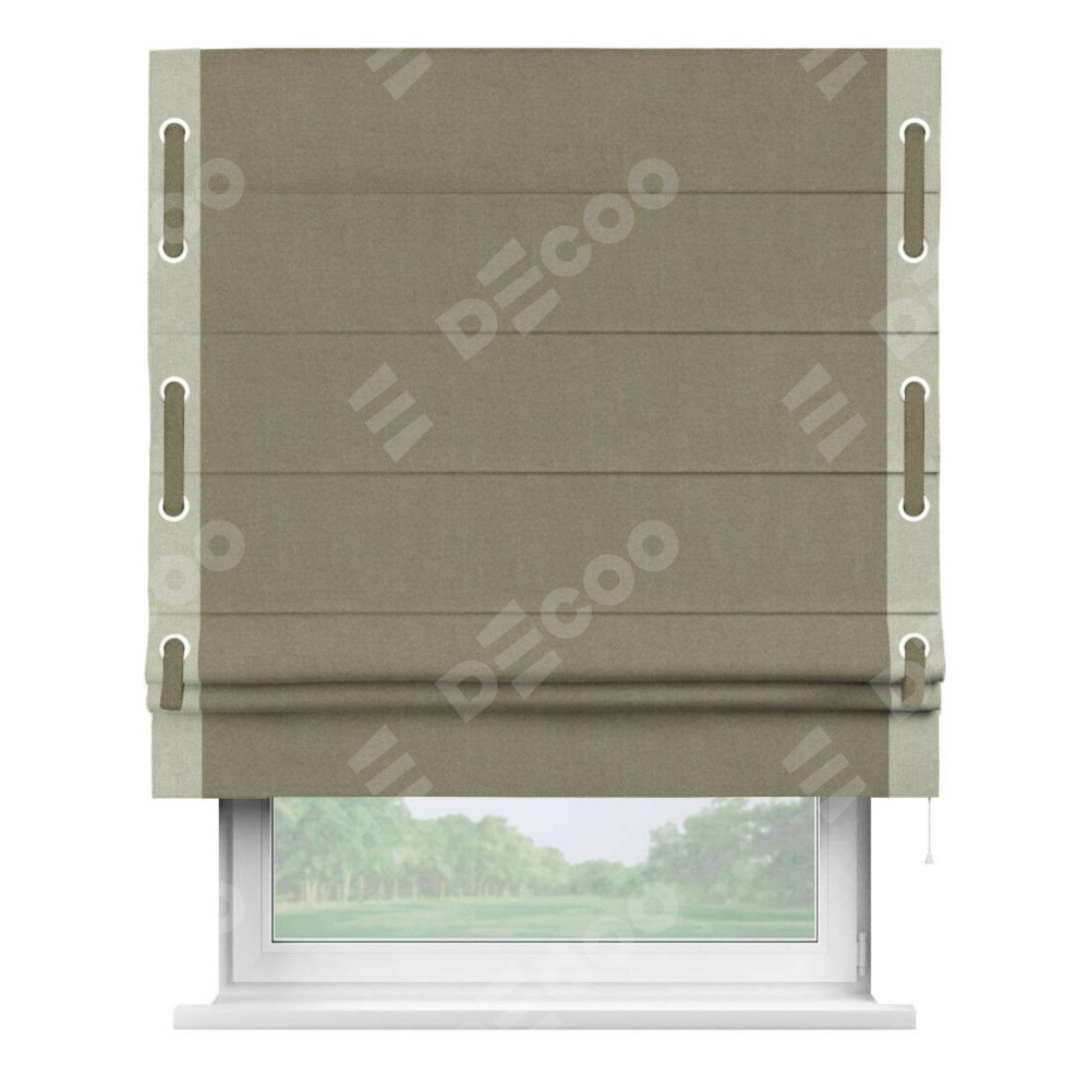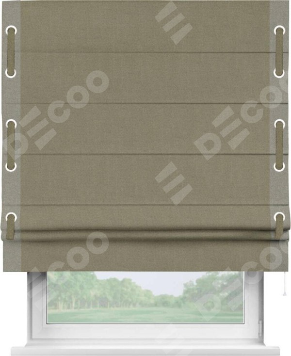 Римская штора «Кортин» с кантом Стрим Дуо (люверсы с пояском), для проема, лён блэкаут бежевый