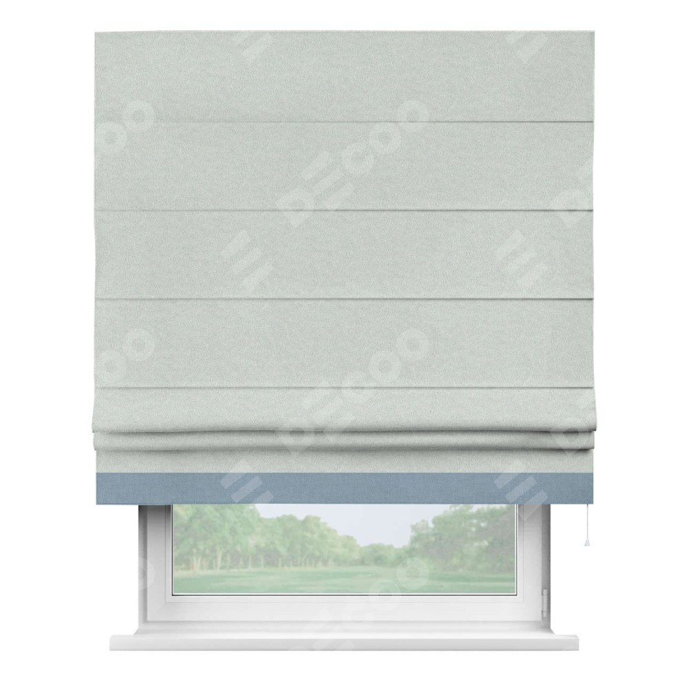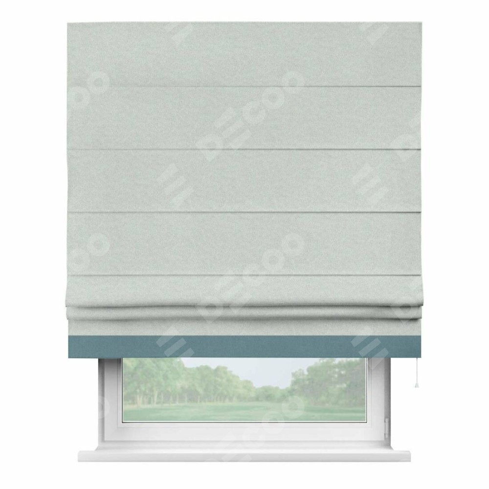Римская штора производителя «Cortin», используется для проёма, пошита из ткани лён блэкаут белый, артикул 69451. Отделка шторы кантом «Джестер», ткань для канта используется из льна разной расцветки на выбор. Имеет универсальный механизм и подходит для монтажа: на потолок, на стену и в нишу.