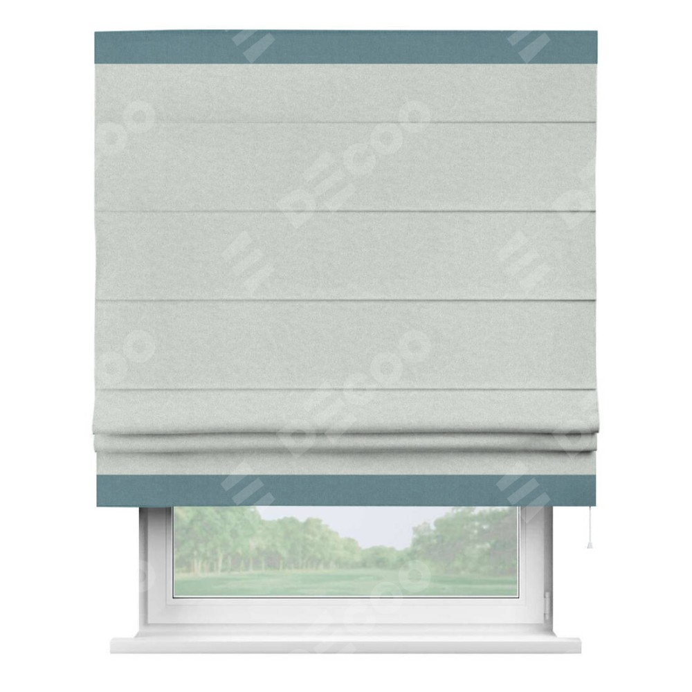 Римская штора производителя «Cortin», используется для проёма, пошита из ткани лён блэкаут белый, артикул 69451. Отделка шторы кантом «Горизонт», ткань для канта используется из льна разной расцветки на выбор. Имеет универсальный механизм и подходит для монтажа: на потолок, на стену и в нишу.