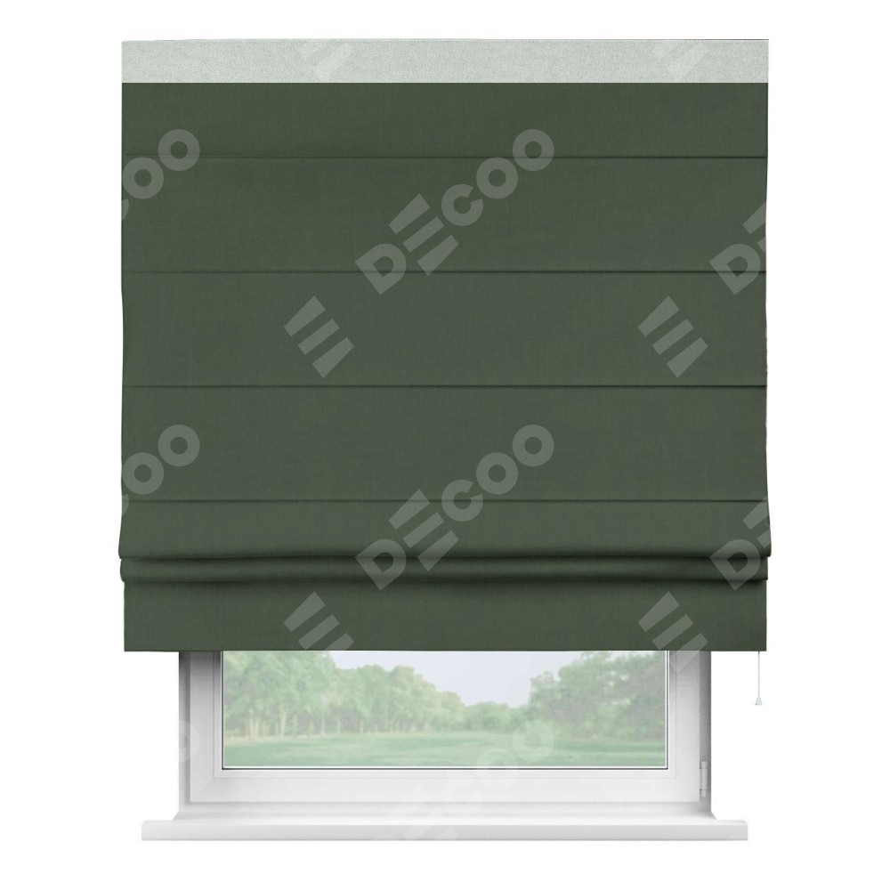 Римская штора «Кортин» с кантом Кинг, для проема, лён блэкаут зелёный