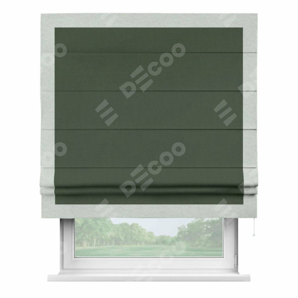 Римская штора «Кортин» с кантом Чесс, для проема, лён блэкаут зелёный