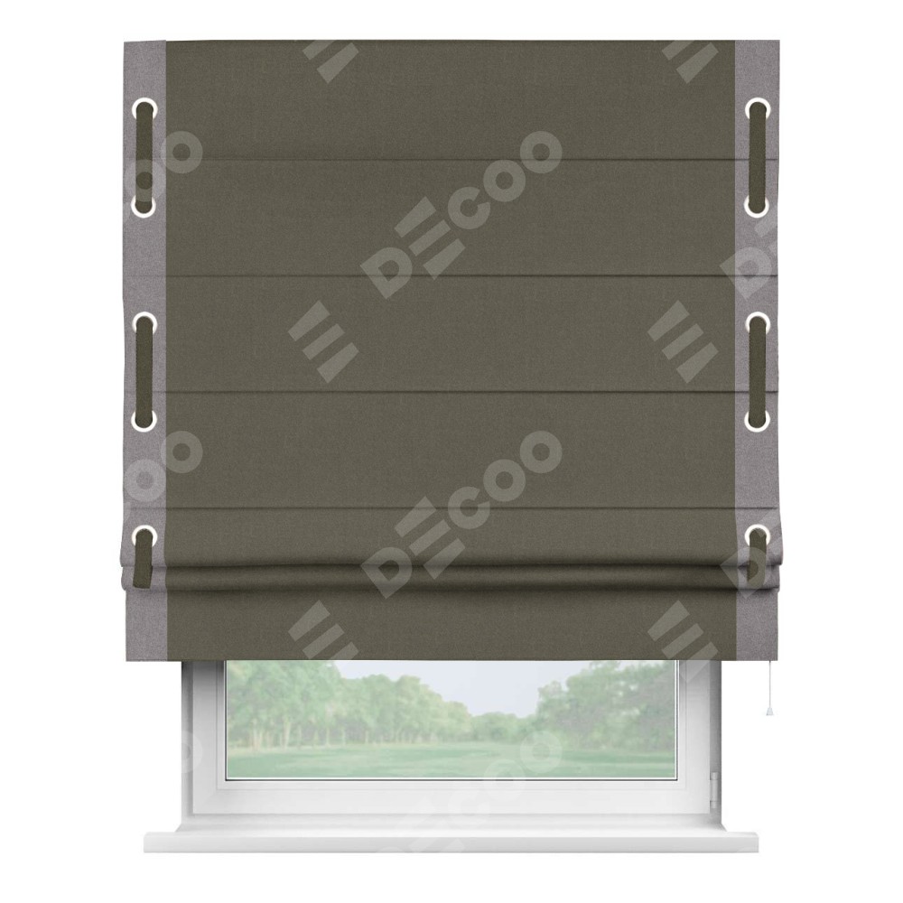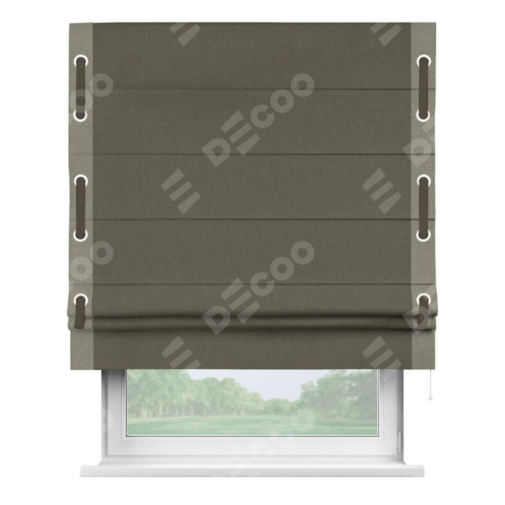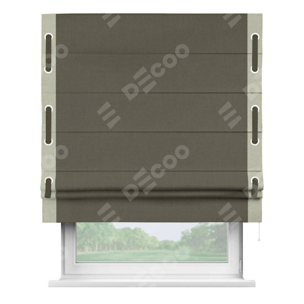 Римская штора «Кортин» с кантом Стрим Дуо (люверсы с пояском), для проема, лён блэкаут коричневый