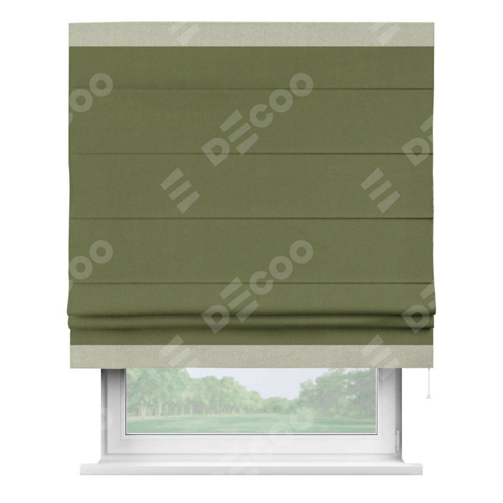 Римская штора «Кортин» с кантом Горизонт, для проема, лён блэкаут оливковый