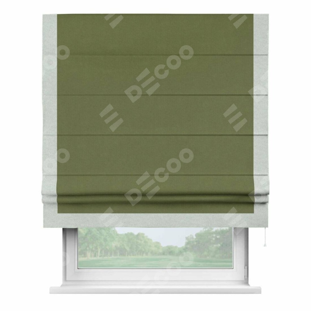 Римская штора «Кортин» с кантом Виктория, для проема, лён блэкаут оливковый