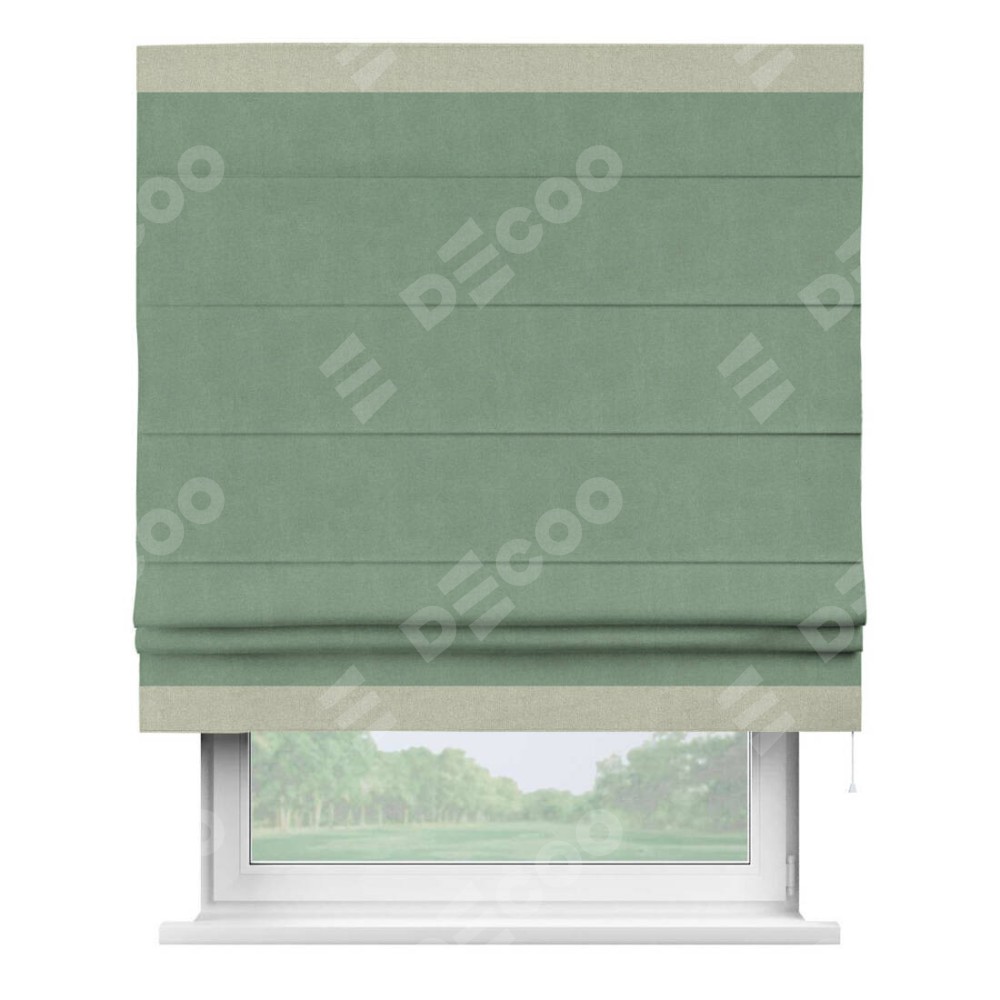 Римская штора «Кортин» с кантом Горизонт, для проема, лён блэкаут светло-бирюзовый