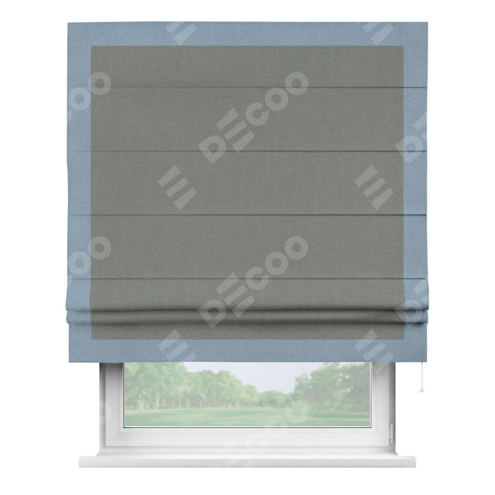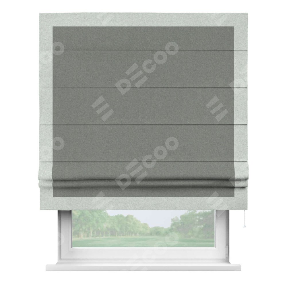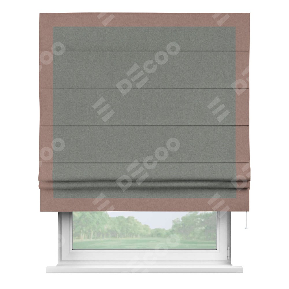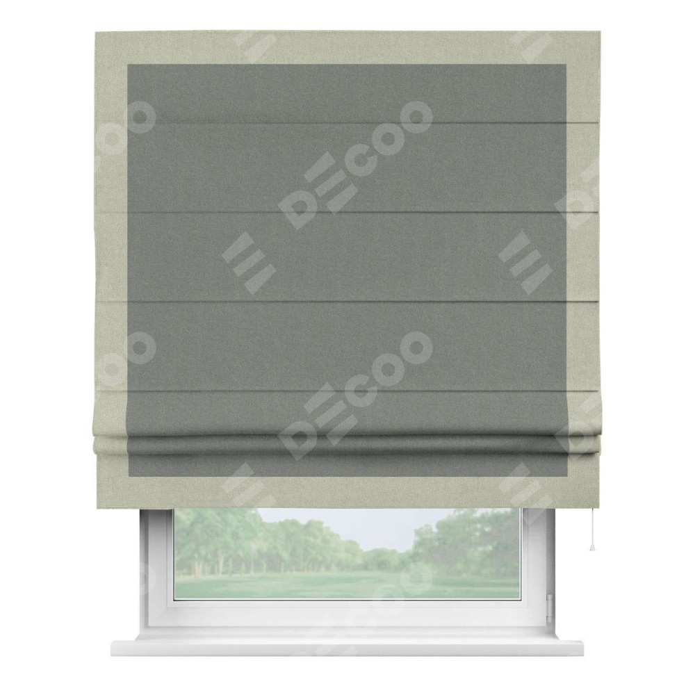Римская штора «Кортин» с кантом Чесс, для проема, лён блэкаут серый
