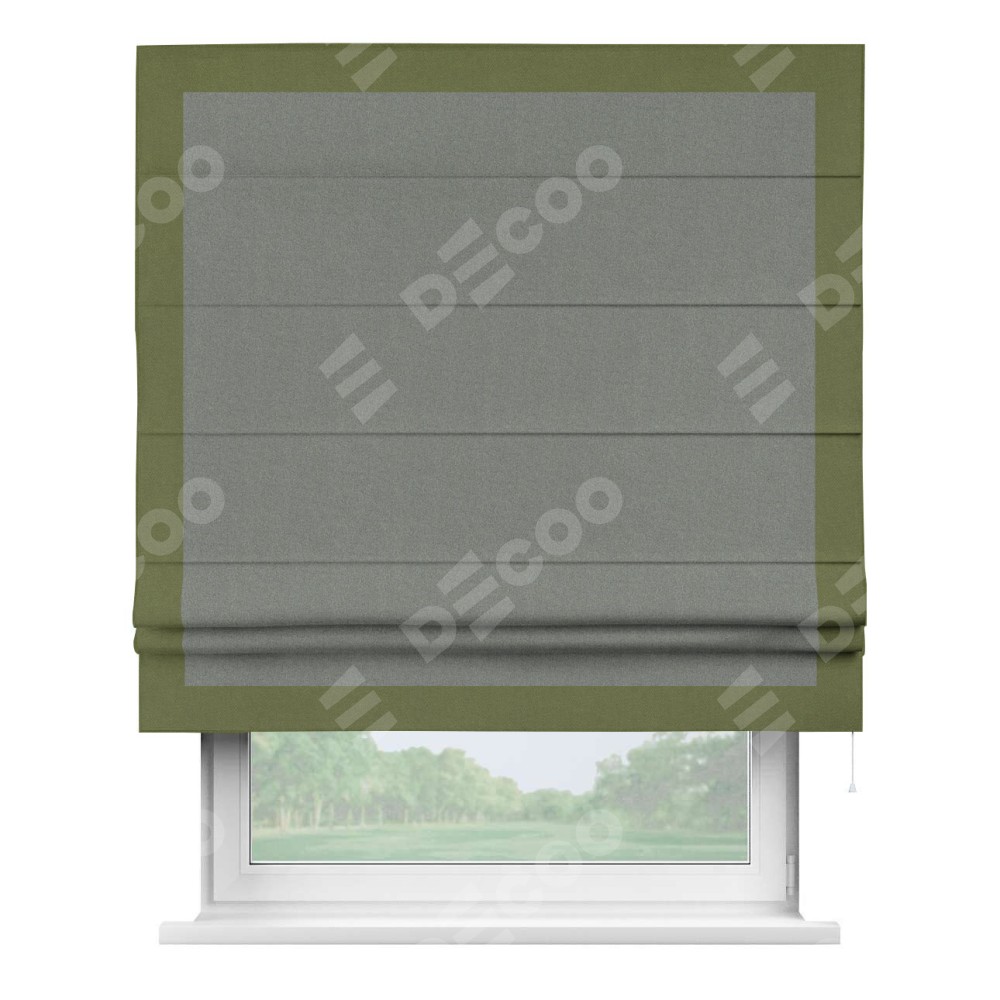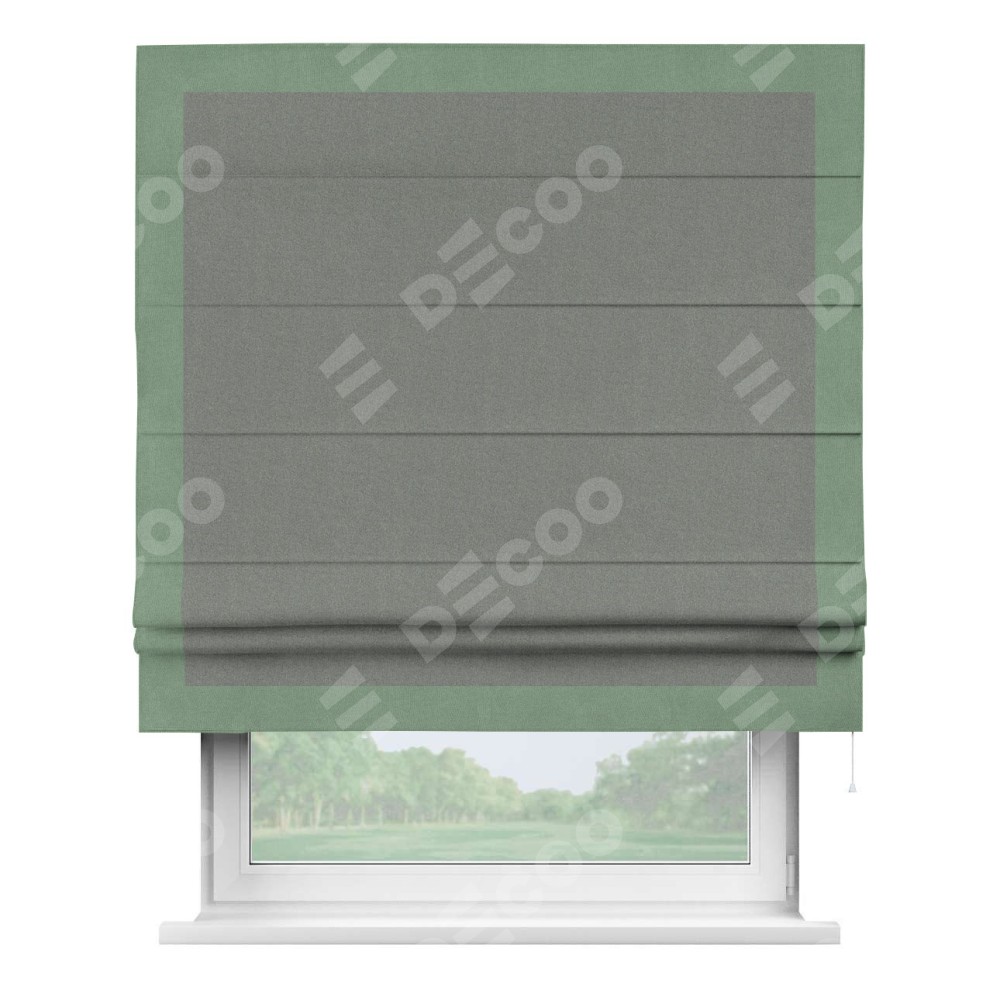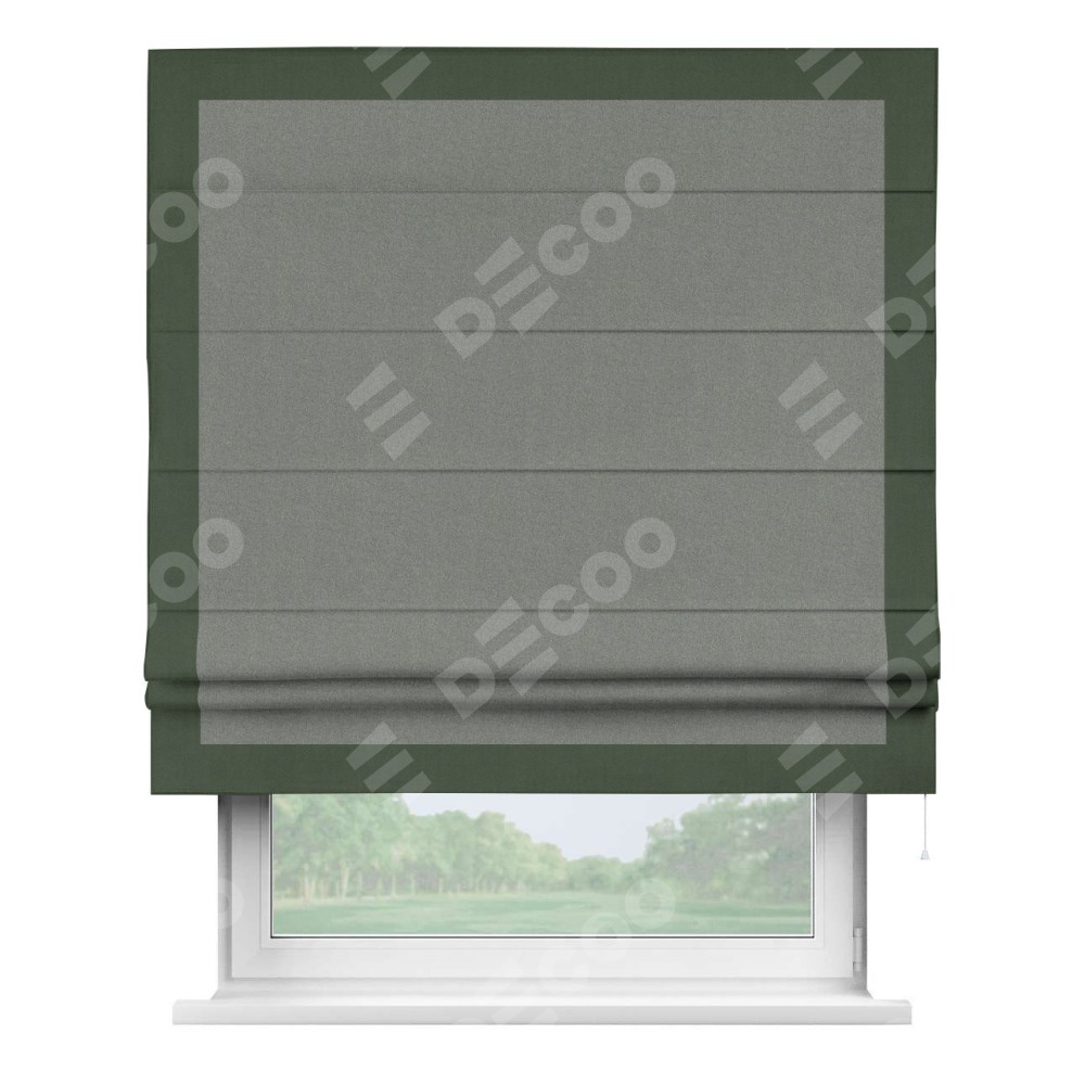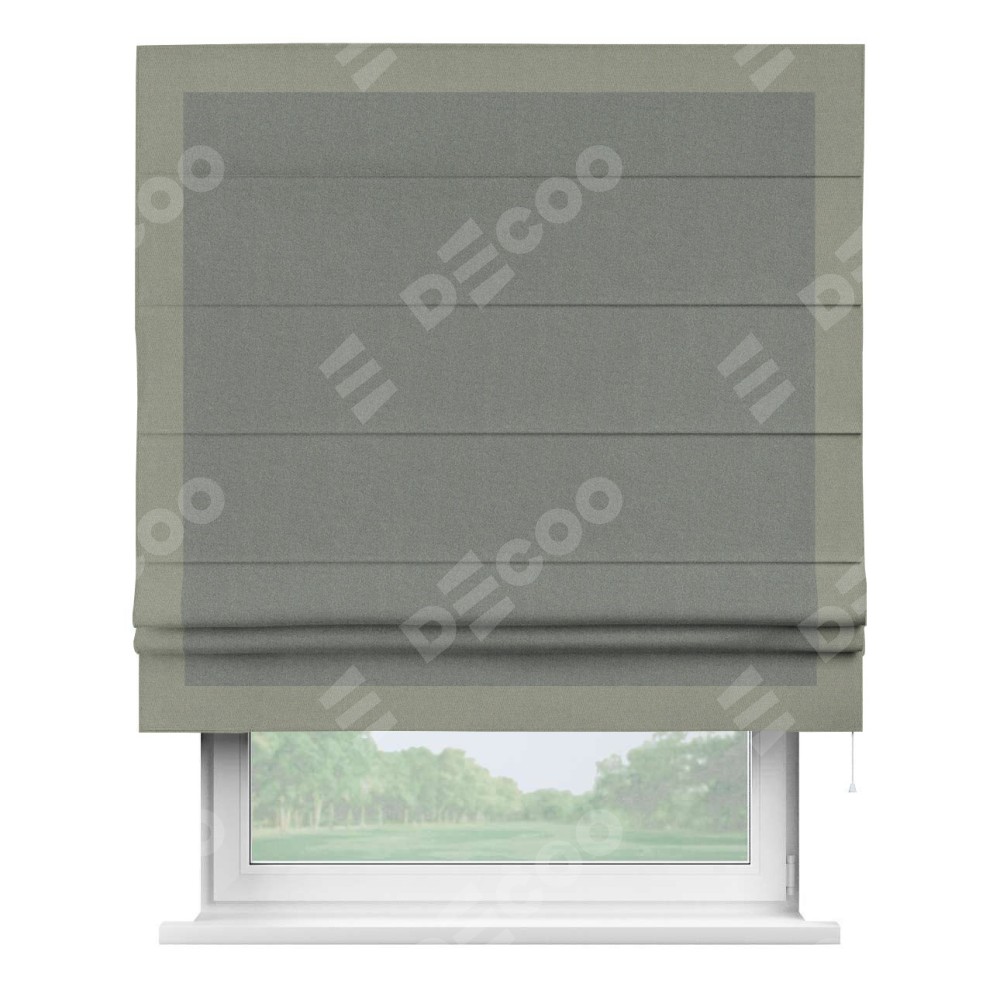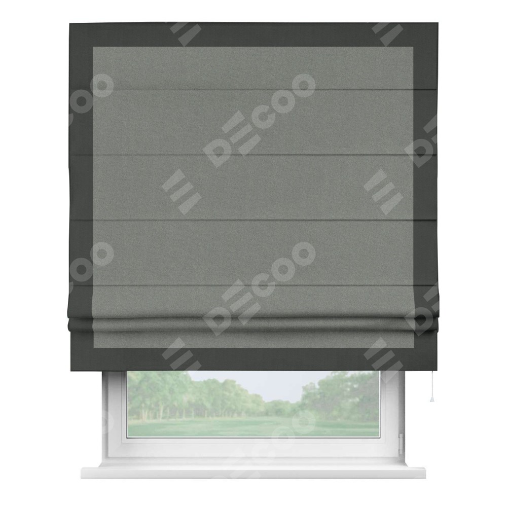 Римская штора «Кортин» с кантом Чесс, для проема, лён блэкаут серый