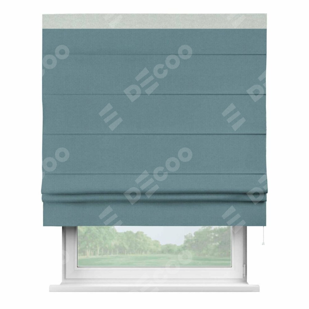 Римская штора «Кортин» с кантом Кинг, для проема, лён блэкаут синий
