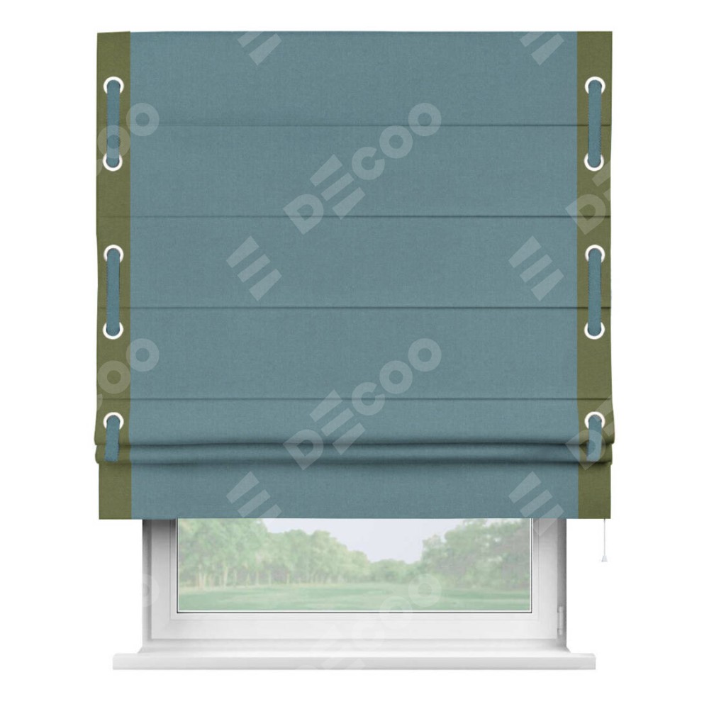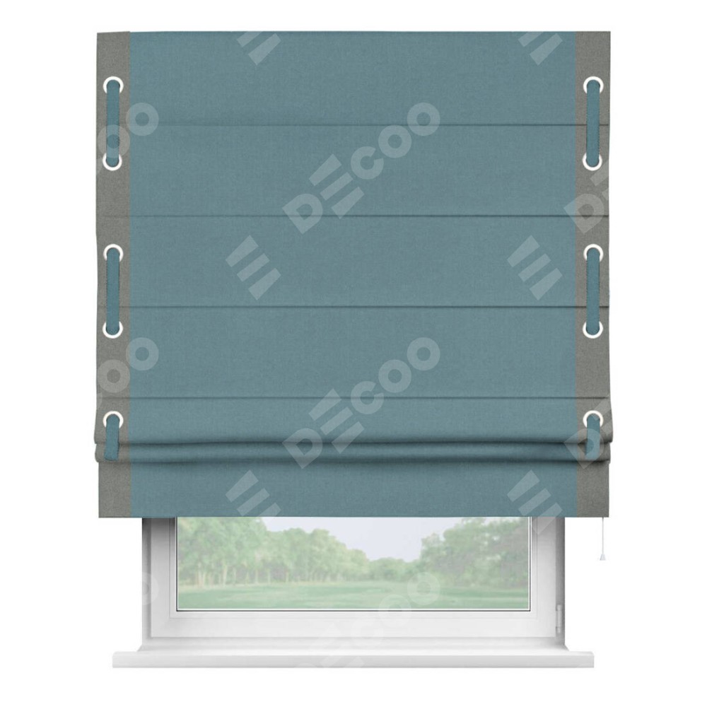 Римская штора «Кортин» с кантом Стрим Дуо (люверсы с пояском), для проема, лён блэкаут синий