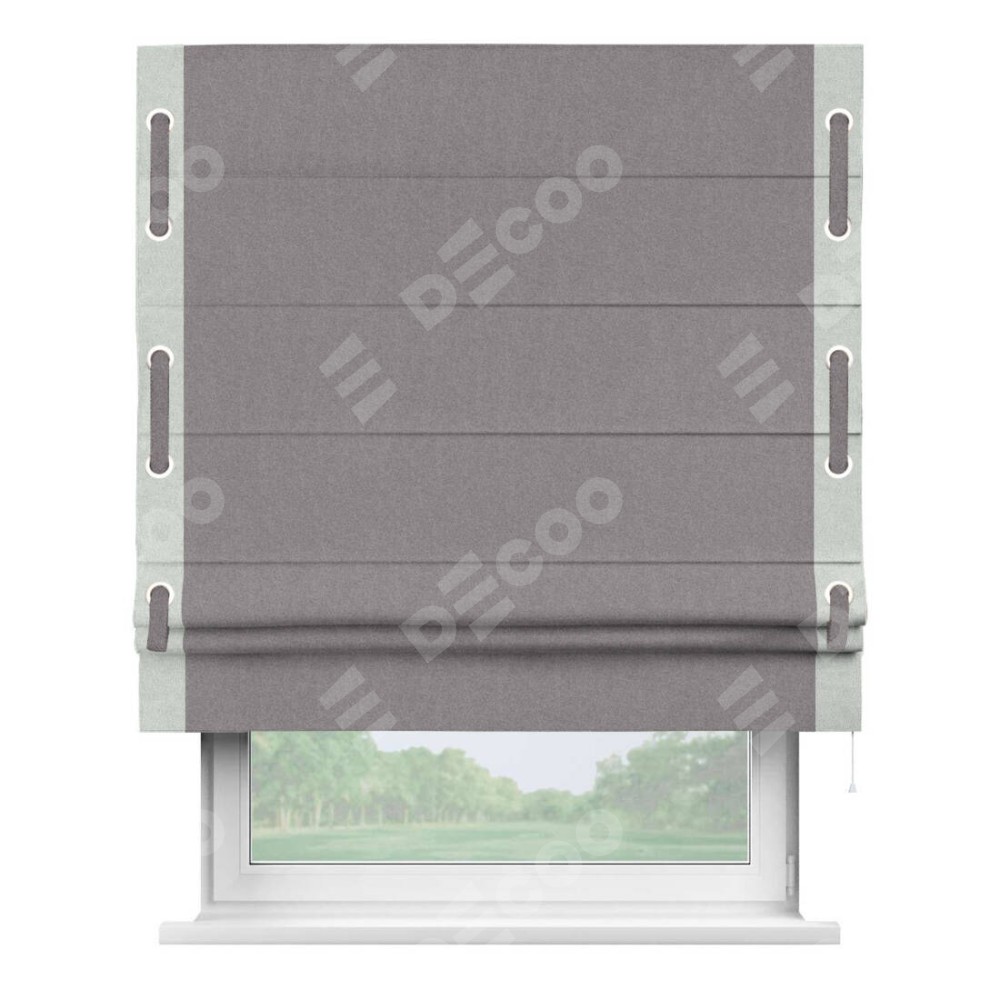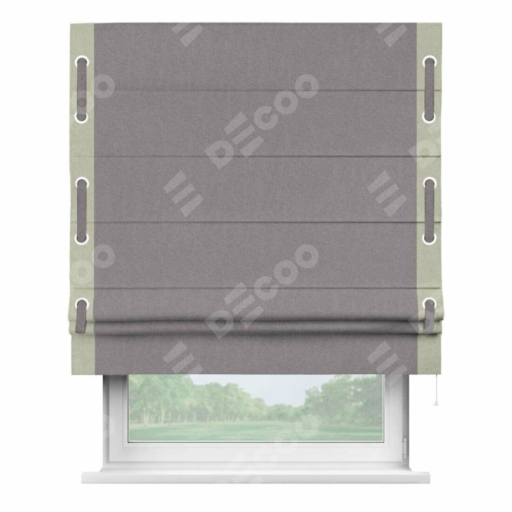Римская штора «Кортин» с кантом Стрим Дуо (люверсы с пояском), для проема, лён блэкаут сиреневый