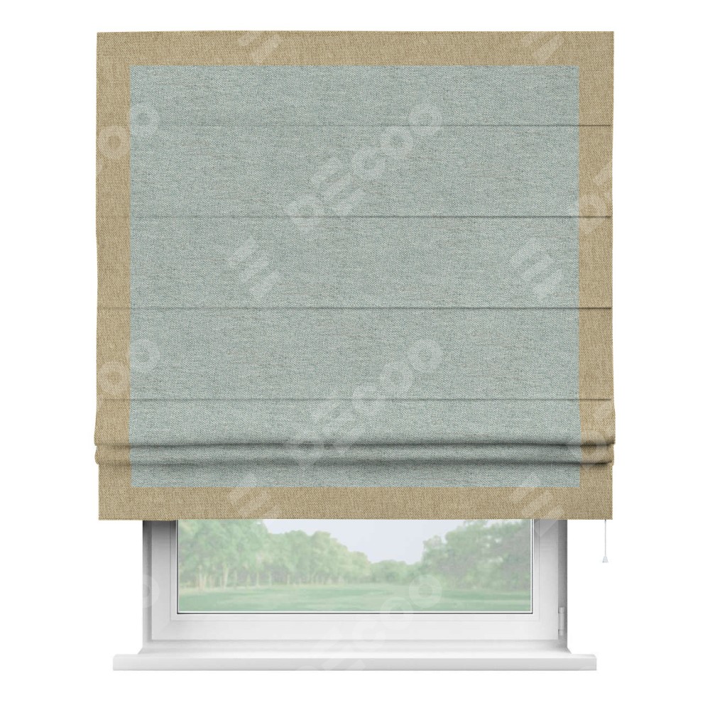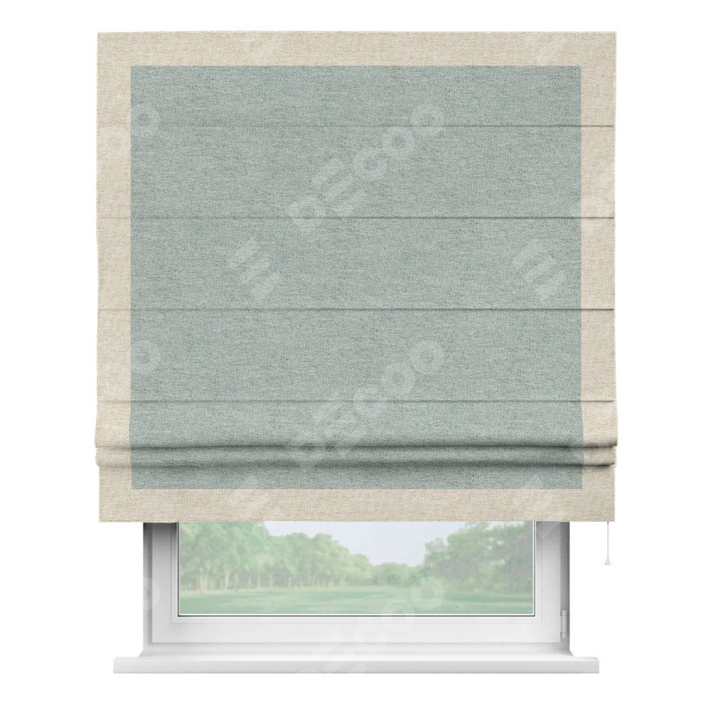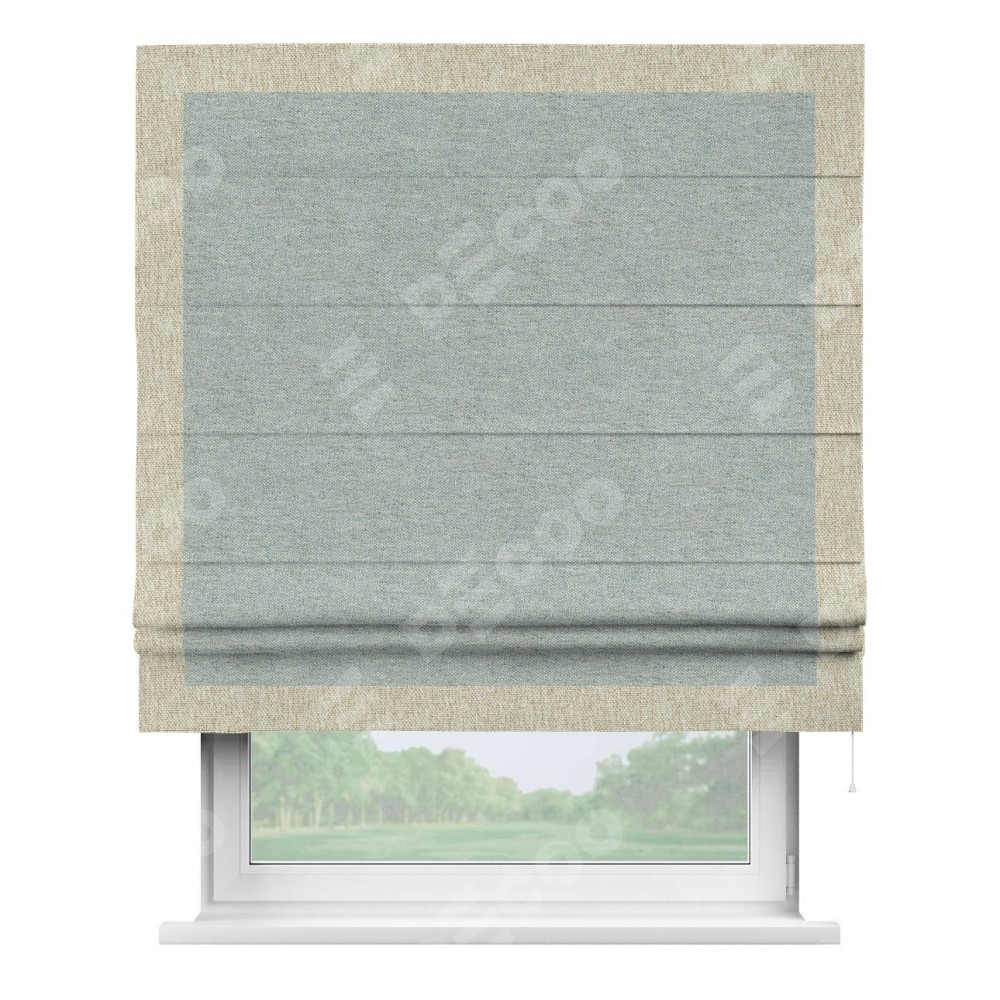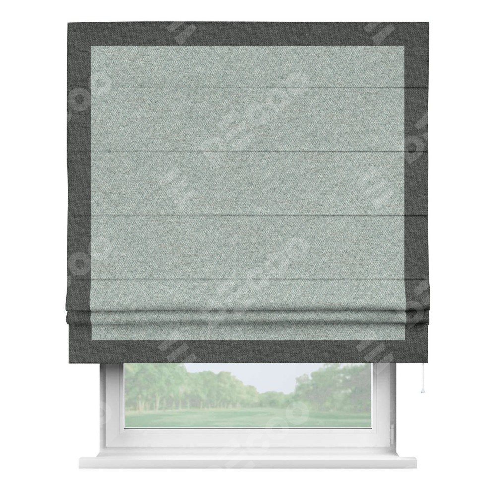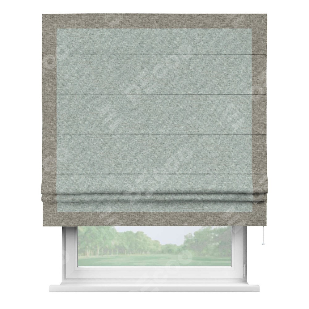 Римская штора производителя «Cortin», используется для проёма, пошита из ткани стиф димаут светло-серый, артикул 44025. Отделка шторы кантом «Чесс», ткань для канта используется из стифа разной расцветки на выбор. Имеет универсальный механизм и подходит для монтажа: на потолок, на стену и в нишу.