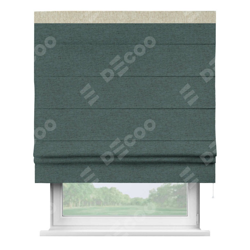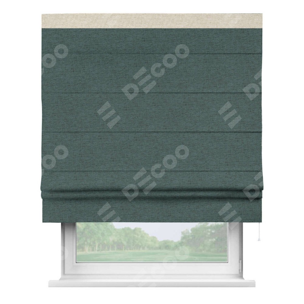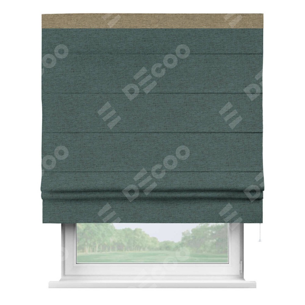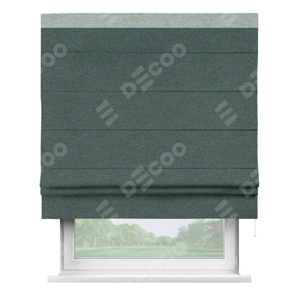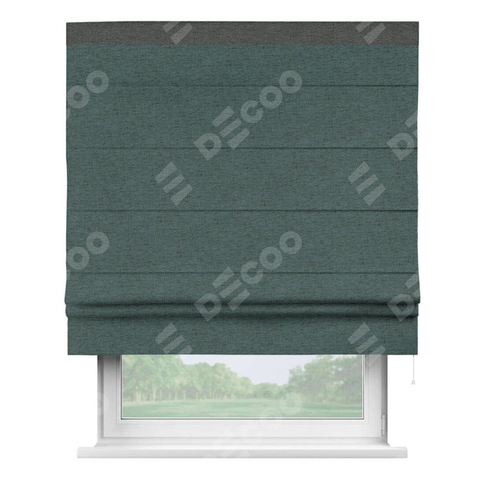 Римская штора «Кортин» с кантом Кинг, для проема, ткань стиф димаут сине-зелёный