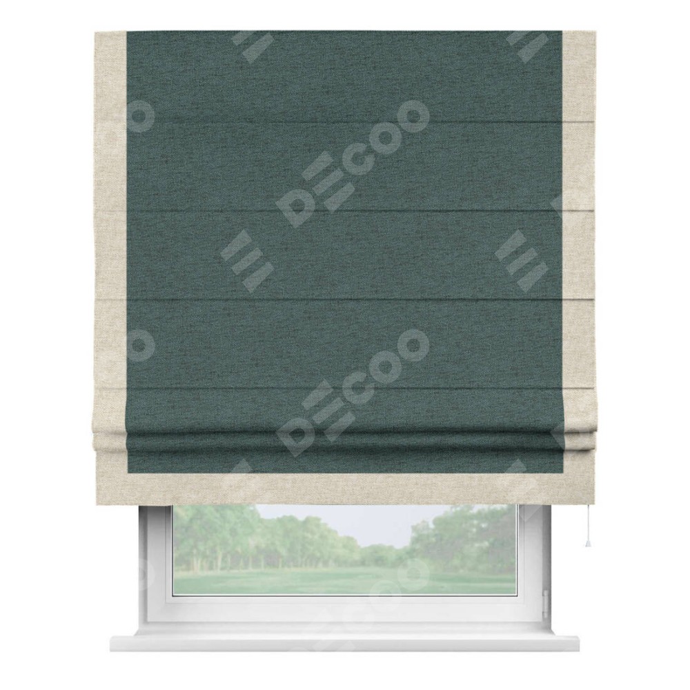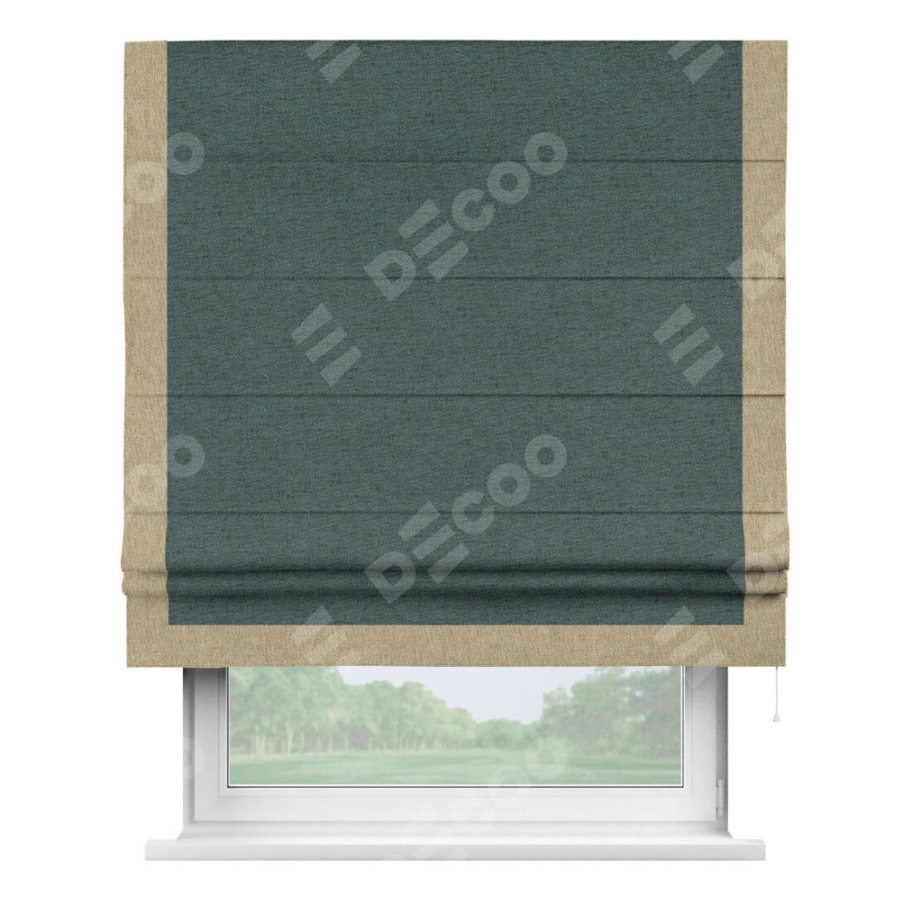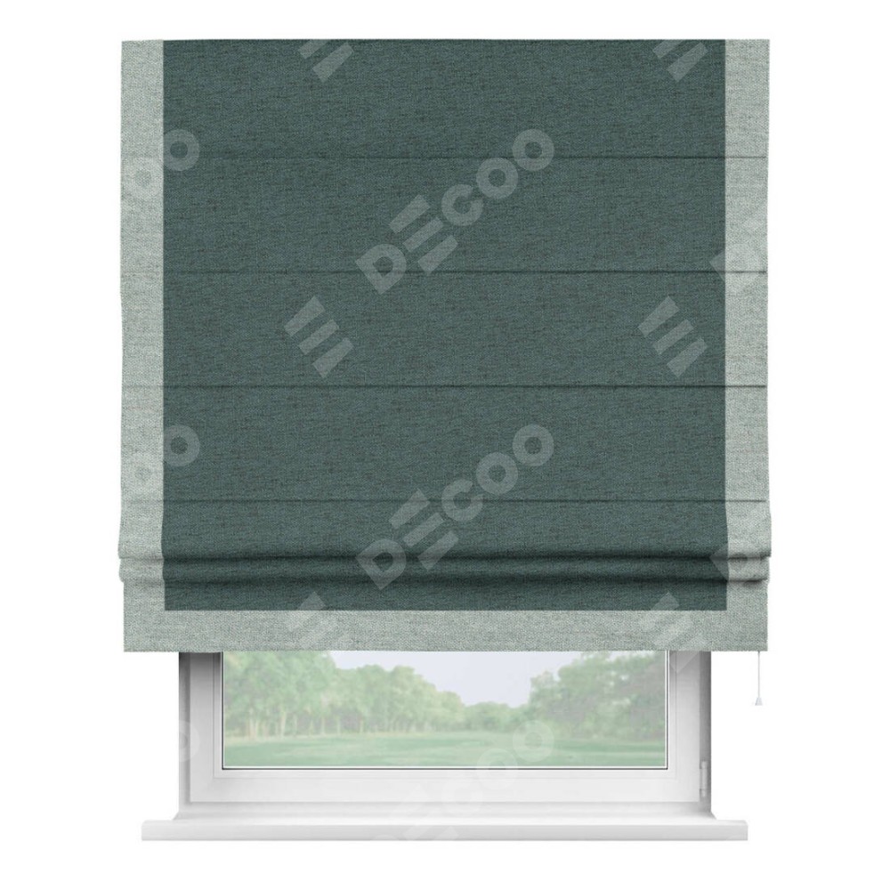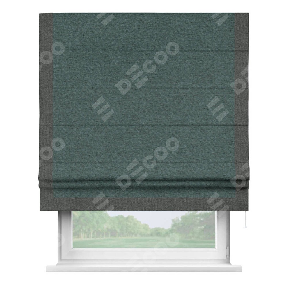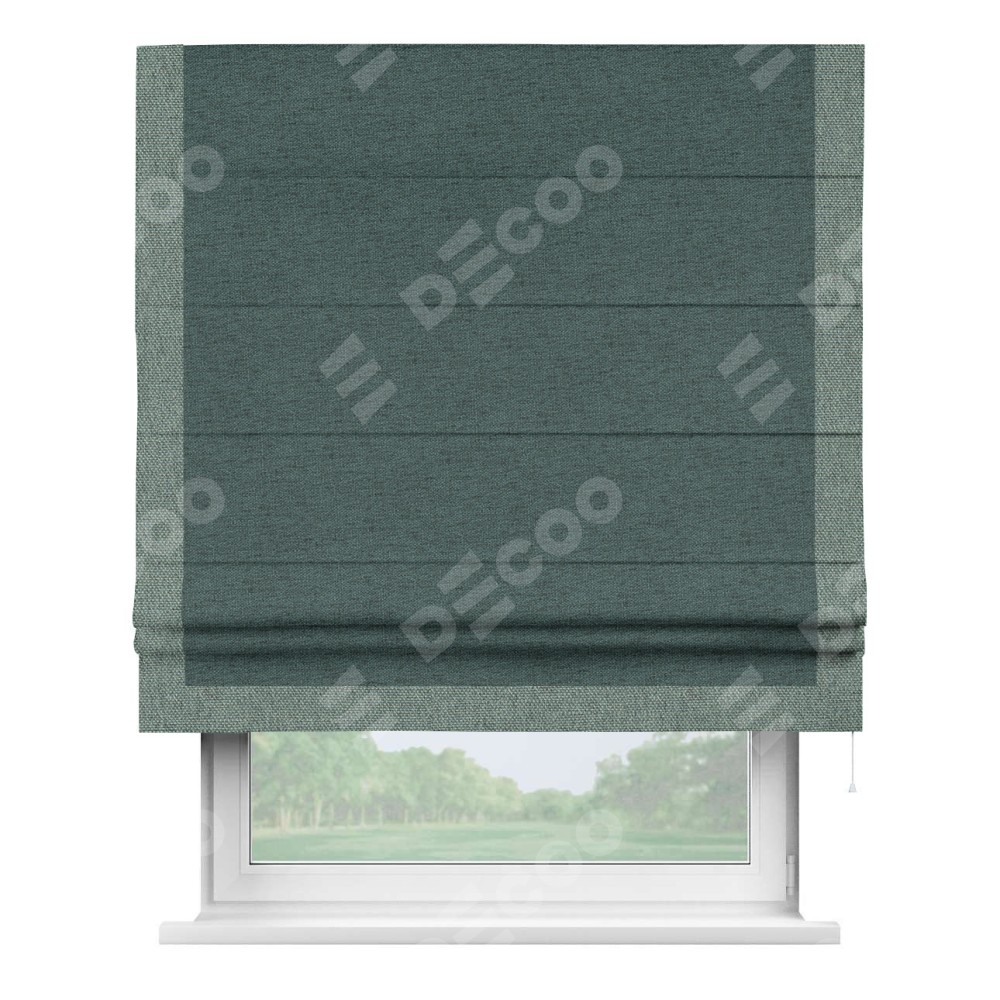 Римская штора «Кортин» с кантом Виктория, для проема, ткань стиф димаут сине-зелёный