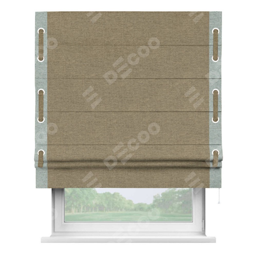 Римская штора «Кортин» с кантом Стрим Дуо (люверсы с пояском), для проема, ткань стиф димаут тёмно-бежевый