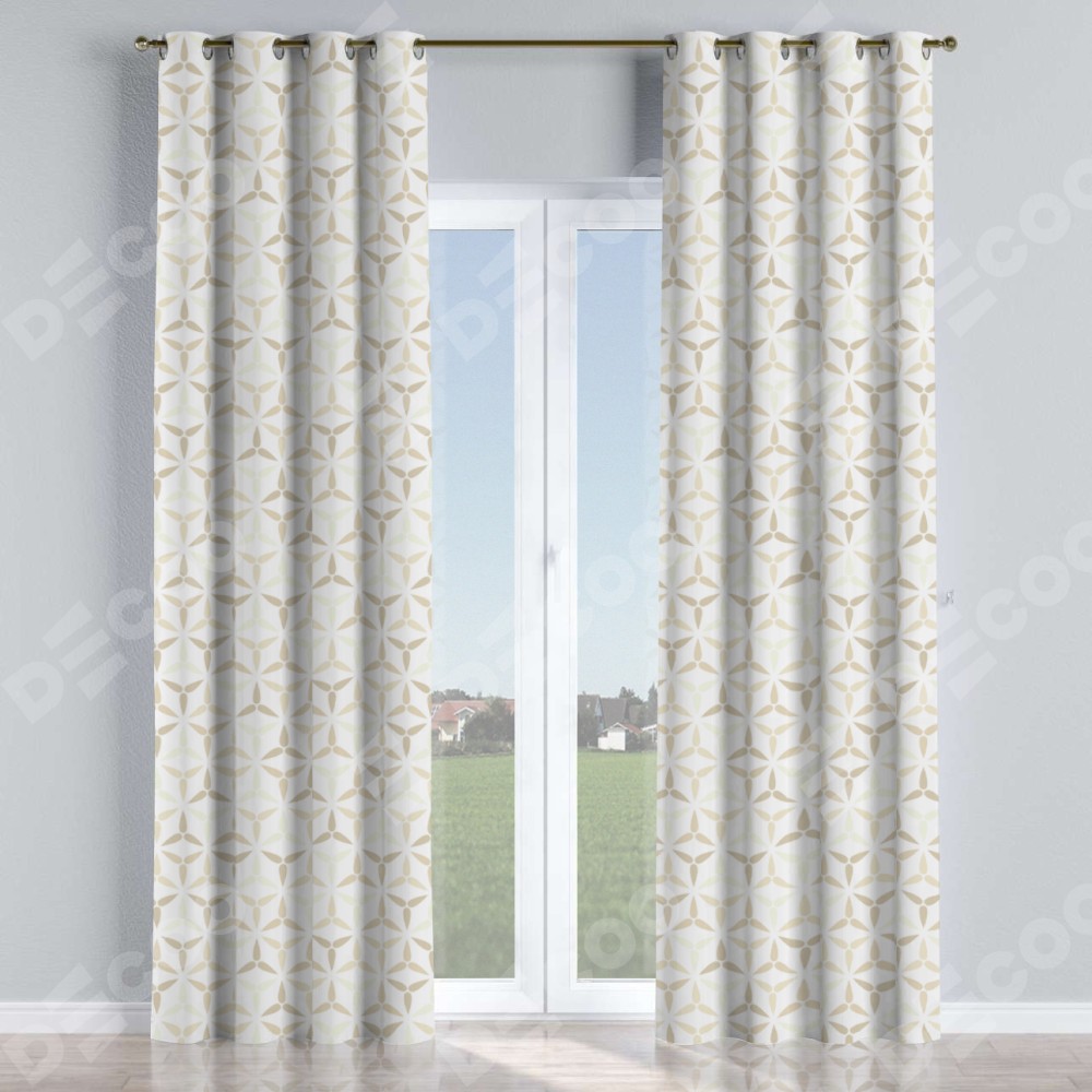 Комплект прямых штор, от производителя «Cortin», пошиты из ткани блэкаут с нанесением сублимационной печати «Бежевая графика». Данная модель пошита на люверсах, комплектуется на выбор круглым карнизом и подходит для монтажа на стену или потолок. Прямые шторы на люверсах шьются по стандарту с коэффициентом 1/2 (на 100 см. ширины проёма 200 см. ширины ткани), отличительным преимуществом данной модели является простой способ монтажа. Достаточно повесить ее на трубу и штора готова!