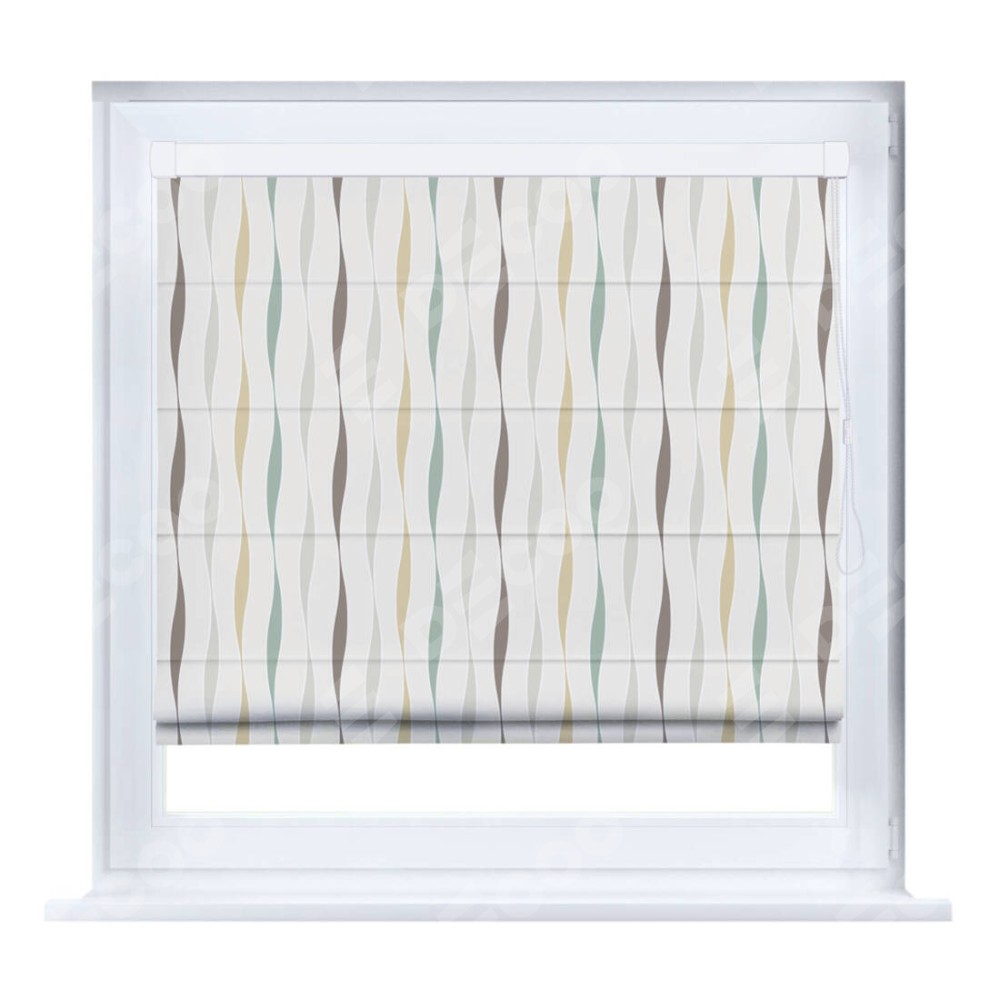 Классическая римская штора представляет собой полотно прикрепленное к карнизу, с обратной стороны полотна вшиты планки. С их помощь при сборе шторы образуются красивые горизонтальные складки.