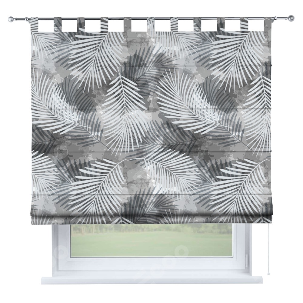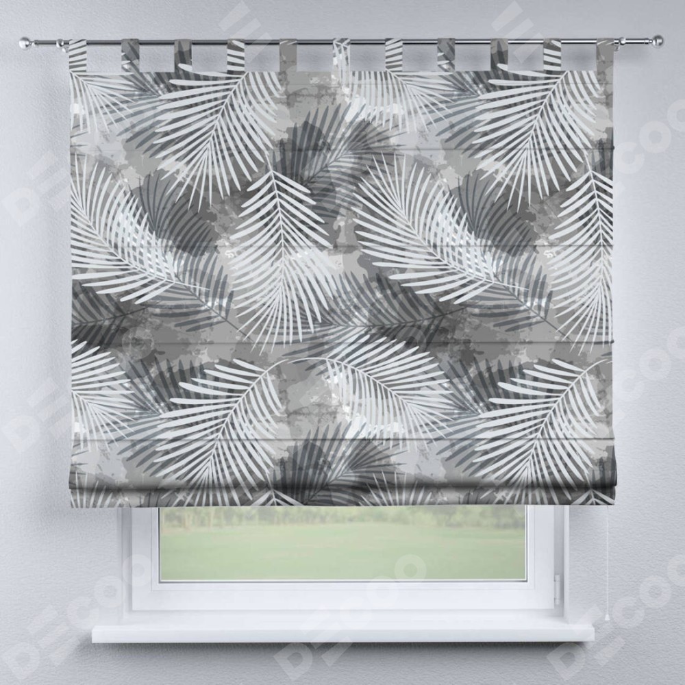 Римская штора производителя «Cortin», используется для проёма, пошита из ткани блэкаут с нанесением сублимационной печати «Листья в тени». Данная модель пошита на петлях, комплектуется на выбор круглым карнизом и подходит для монтажа на стену. Римская штора на петлях имеет простую систему регулировки высоты, отличительным преимуществом данной модели является простой способ монтажа. Достаточно повесить ее на трубу и штора готова!