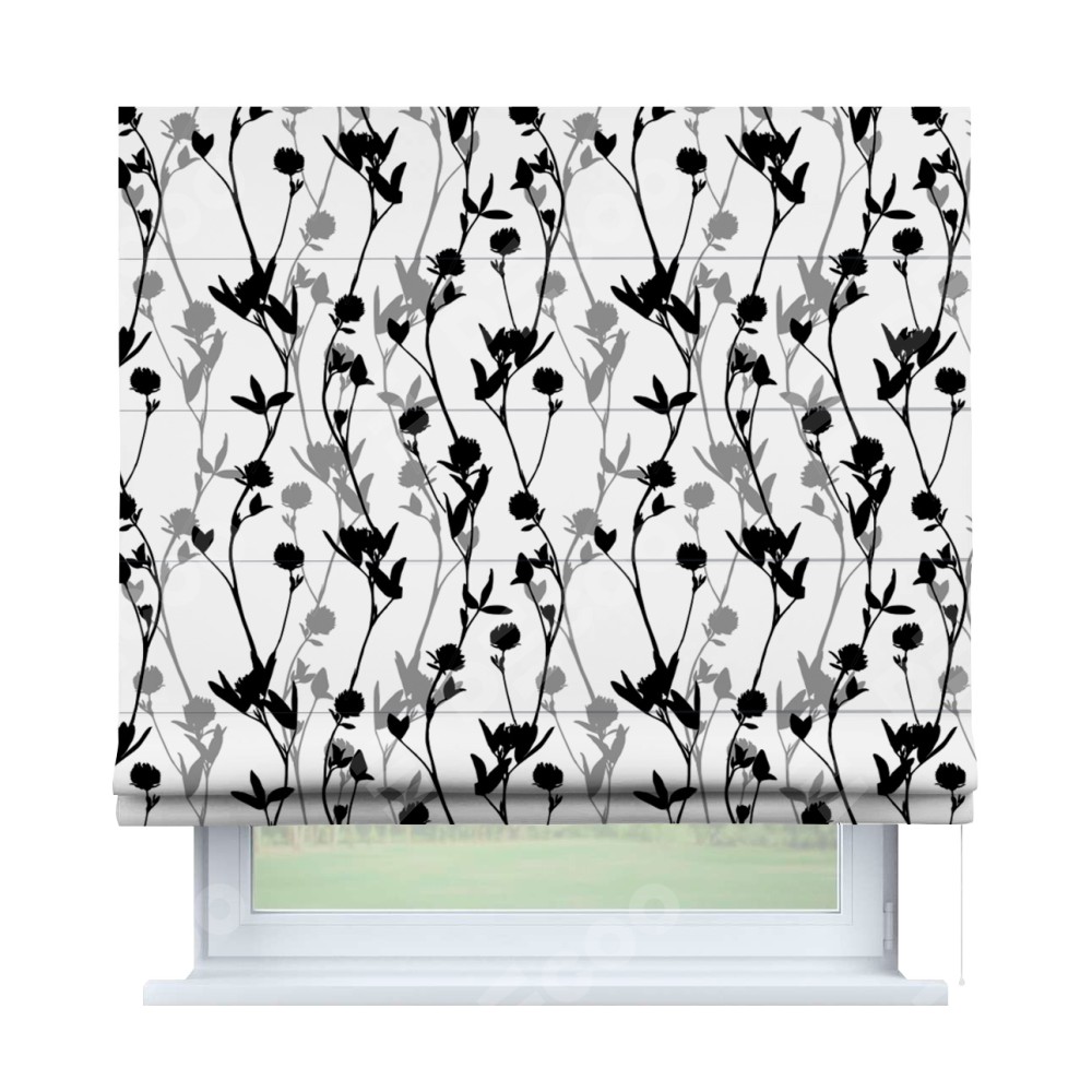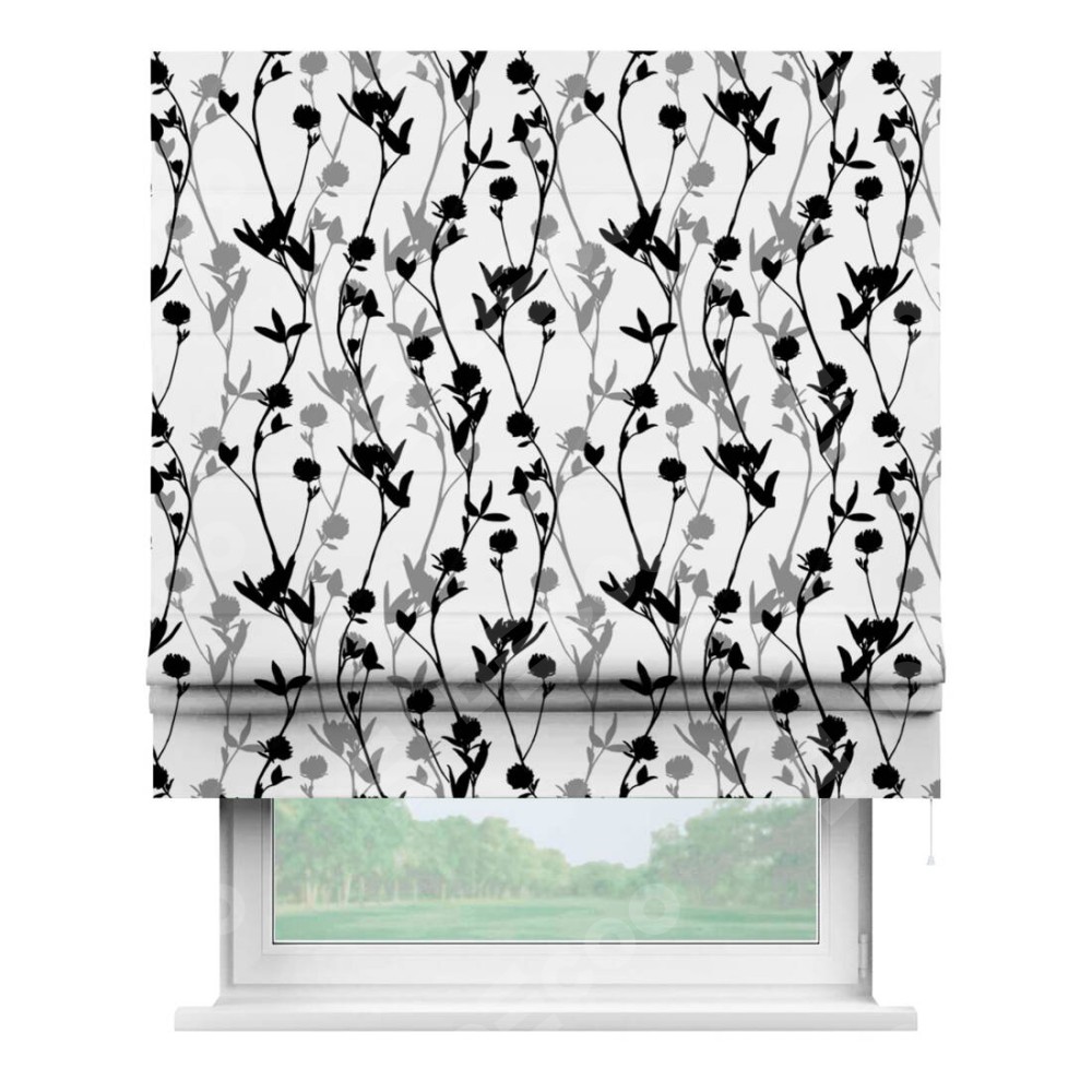 Римская штора производителя «Cortin», используется для проёма, пошита из ткани блэкаут с нанесением сублимационной печати «Цветочный силуэт». Имеет универсальный механизм и подходит для монтажа: на потолок, на стену и в нишу.