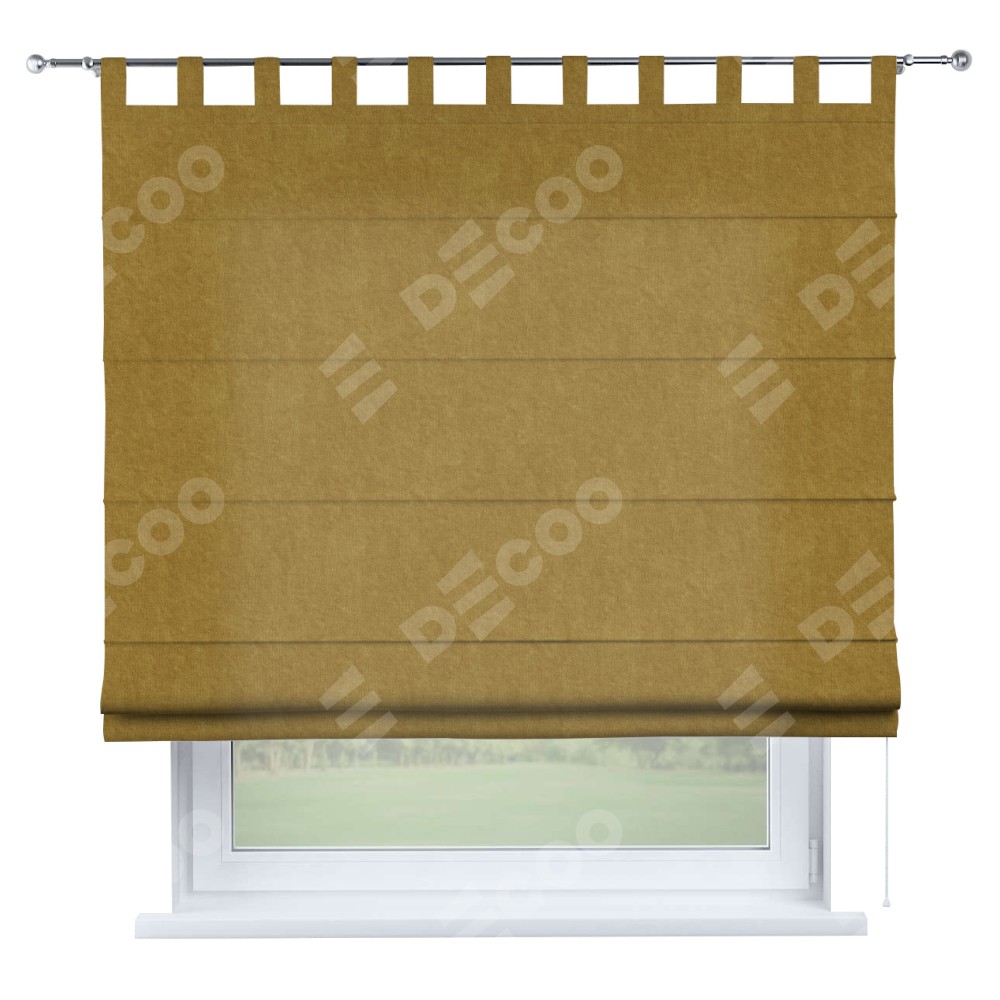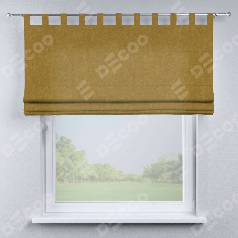 Римская штора производителя «Cortin», используется для проёма, пошита из ткани канвас горчица, артикул ткани v-476. Данная модель пошита на петлях, комплектуется на выбор круглым карнизом и подходит для монтажа на стену. Римская штора на петлях имеет простую систему регулировки высоты, отличительным преимуществом данной модели является простой способ монтажа. Достаточно повесить ее на трубу и штора готова!