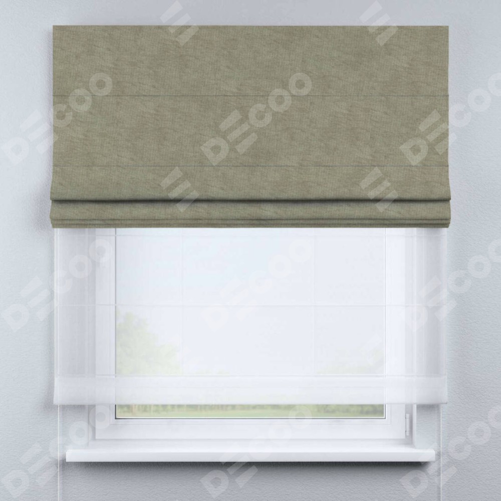 Римская штора день-ночь производителя «Cortin», используется для проёма, пошита из двух полотен, с лицевой стороны канвас капучино артикул v-211, вторая ткань тюль (по стандарту комплектуется тюль белого цвета артикул V-01). Имеет универсальный механизм и подходит для монтажа: на потолок, на стену и в нишу.