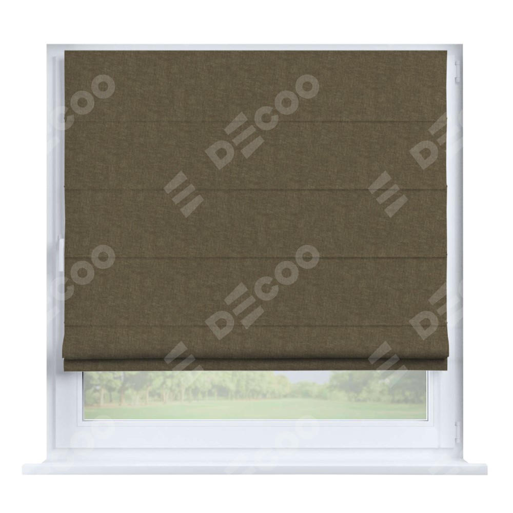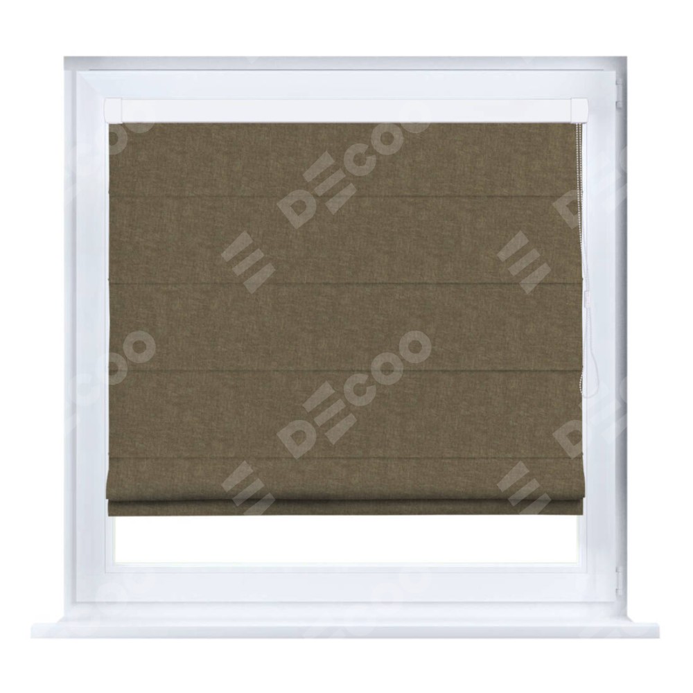 Римская штора производителя «Cortin», устанавливается на створку окна, пошита из ткани канвас молочный шоколад, артикул v-08. Штора шьётся по индивидуальным размерам, для данного типа римской шторы возможная ширина от 35 до 150 см., высота до 250 см.