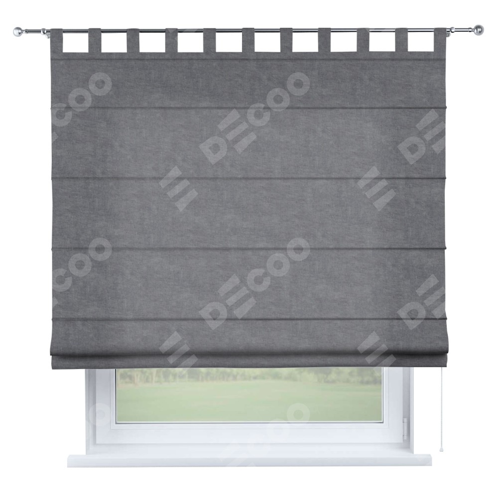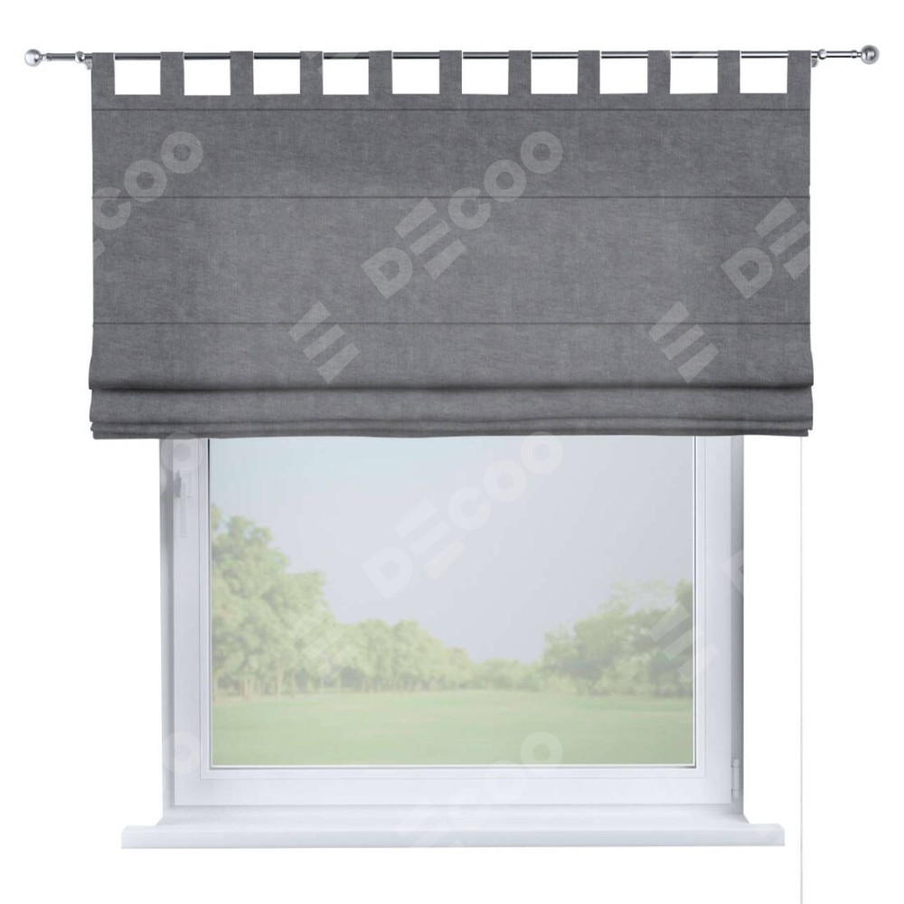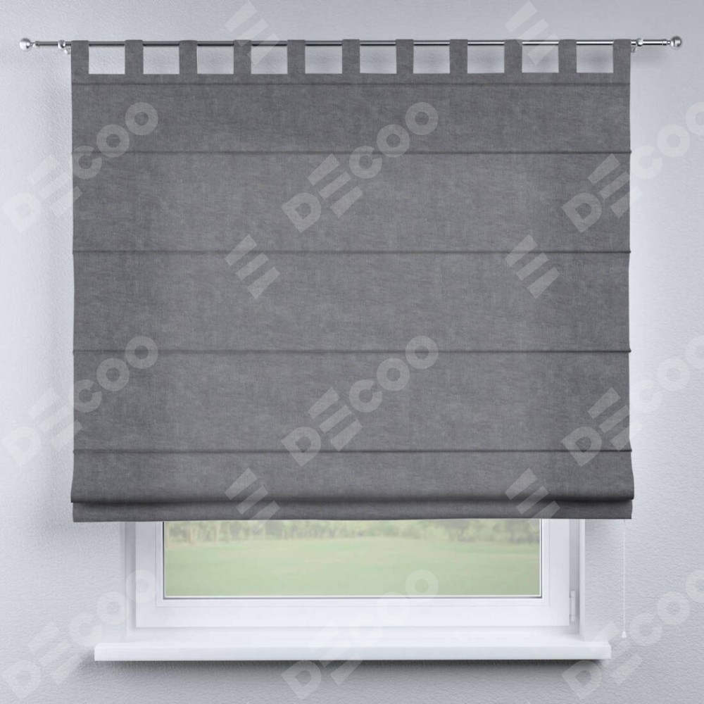 Римская штора производителя «Cortin», используется для проёма, пошита из ткани канвас стальной, артикул ткани v-1082. Данная модель пошита на петлях, комплектуется на выбор круглым карнизом и подходит для монтажа на стену. Римская штора на петлях имеет простую систему регулировки высоты, отличительным преимуществом данной модели является простой способ монтажа. Достаточно повесить ее на трубу и штора готова!