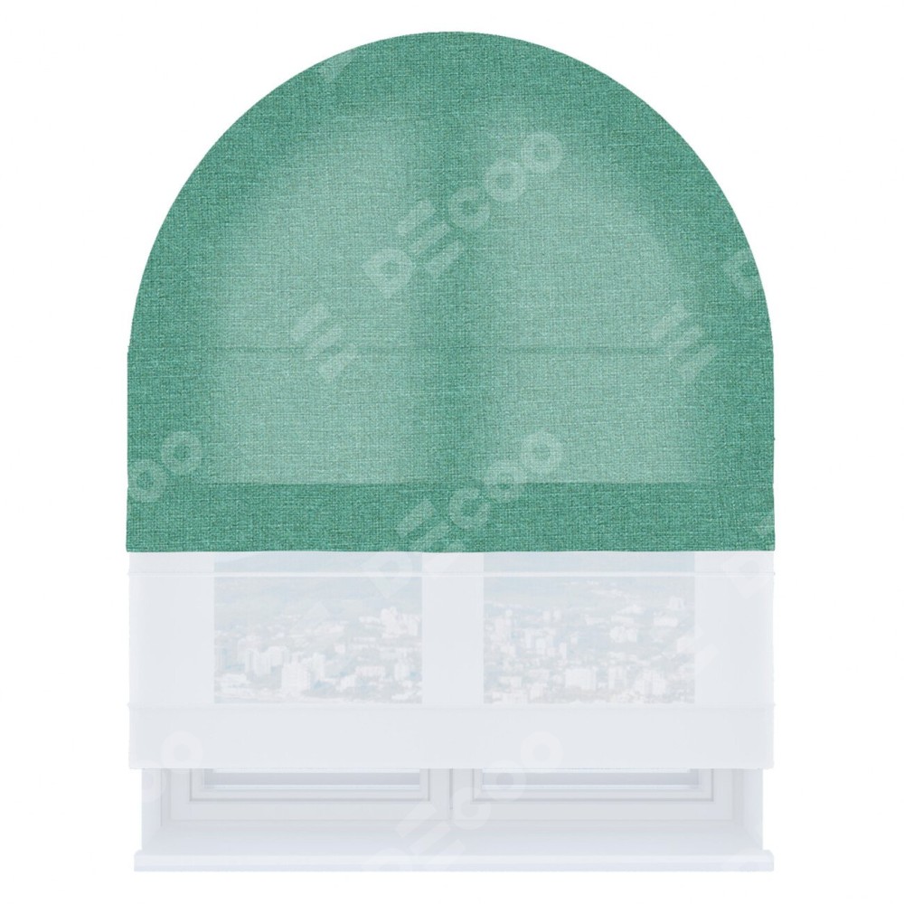 Римская штора день-ночь производителя «Cortin», используется для арочного проёма, пошита из двух полотен, с лицевой стороны лён светло-бирюзовый артикул 53435, вторая ткань тюль (по стандарту комплектуется тюль белого цвета артикул V-01). Штора шьётся по индивидуальным размерам, для данного типа римской шторы возможная ширина от 60 до 300 см. Удобное управление каждой шторой отдельно.