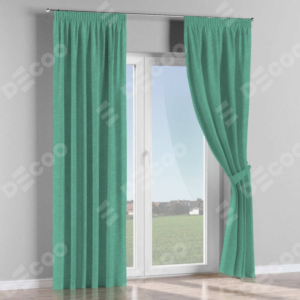 Комплект прямых штор, от производителя «Cortin», пошиты из ткани лён светло-бирюзовый, артикул ткани 53435. С изнаночной стороны в верхней части штор пристрачивается шторная лента с декоративными складками «Карандаш». Для создания элегантных складок прямые шторы шьются по стандарту с коэффициентом 1:2 (на 100 см. ширины проёма 200 см. ширины ткани).