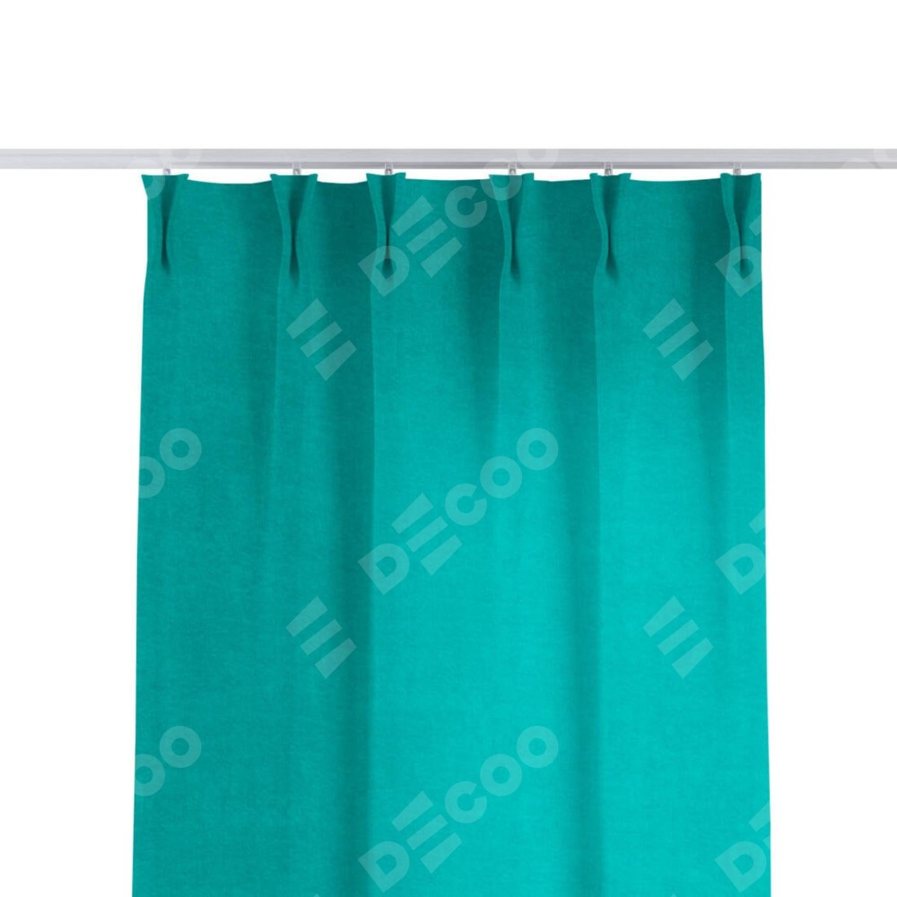 Комплект прямых штор, от производителя «Cortin», пошиты из ткани канвас бирюзовый, артикул ткани v-1048. С изнаночной стороны в верхней части штор пристрачивается шторная лента с декоративными складками «Кустик». Для создания элегантных складок прямые шторы шьются по стандарту с коэффициентом 1:2 (на 100 см. ширины проёма 200 см. ширины ткани).