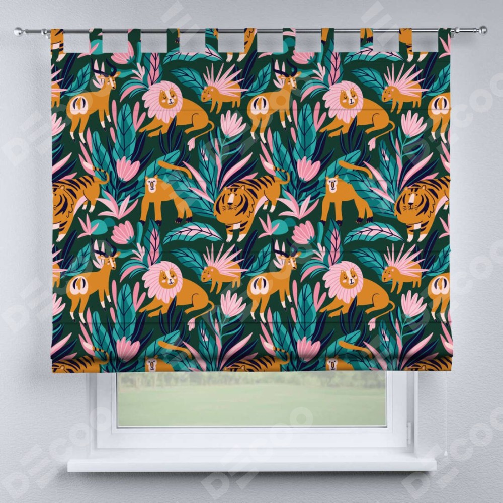 Римская штора производителя «Cortin», используется для проёма, пошита из ткани блэкаут с нанесением сублимационной печати «Дикие животные». Данная модель пошита на петлях, комплектуется на выбор круглым карнизом и подходит для монтажа на стену. Римская штора на петлях имеет простую систему регулировки высоты, отличительным преимуществом данной модели является простой способ монтажа. Достаточно повесить ее на трубу и штора готова!