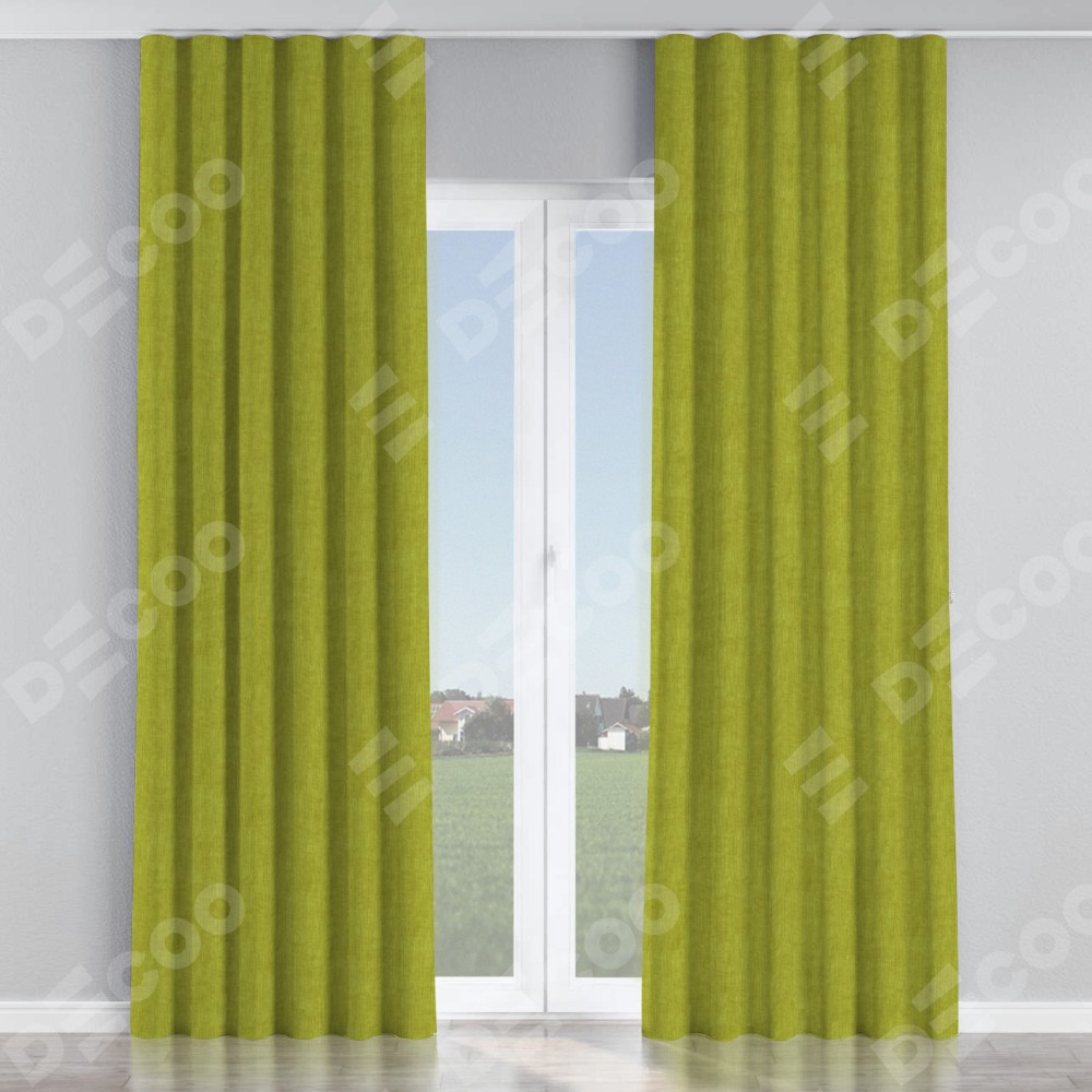 Комплект прямых штор, от производителя «Cortin», пошиты из ткани канвас зелёное яблоко, артикул ткани v-370. С изнаночной стороны в верхней части штор пристрачивается шторная лента с декоративными складками «Волна». Для создания элегантных складок прямые шторы шьются по стандарту с коэффициентом 1:2 (на 100 см. ширины проёма 200 см. ширины ткани).