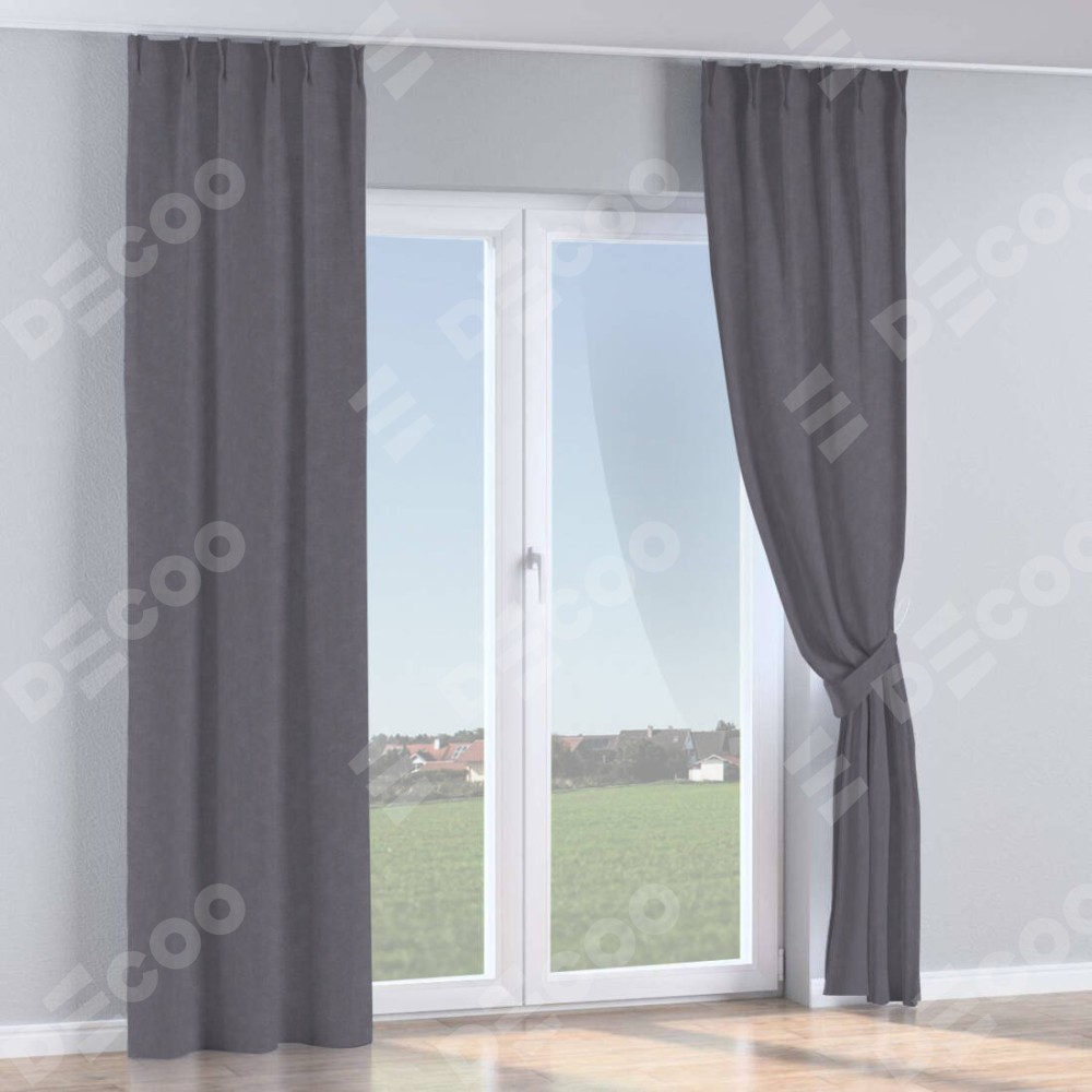 Комплект прямых штор, от производителя «Cortin», пошиты из ткани канвас лавандовый, артикул ткани v-223. С изнаночной стороны в верхней части штор пристрачивается шторная лента с декоративными складками «Кустик». Для создания элегантных складок прямые шторы шьются по стандарту с коэффициентом 1:2 (на 100 см. ширины проёма 200 см. ширины ткани).