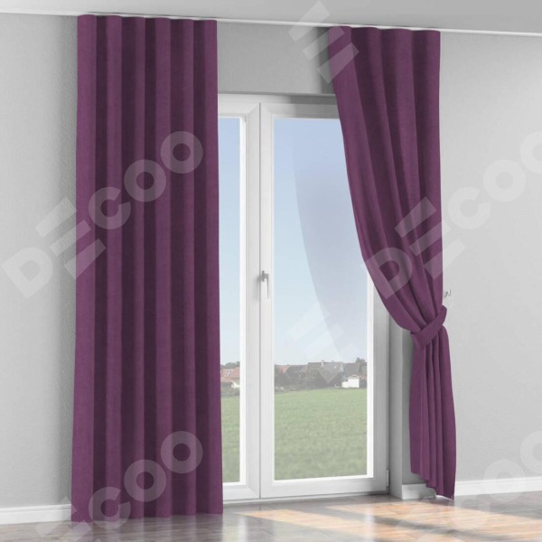 Комплект прямых штор, от производителя «Cortin», пошиты из ткани канвас сиреневый, артикул ткани v-98. С изнаночной стороны в верхней части штор пристрачивается шторная лента с декоративными складками «Волна». Для создания элегантных складок прямые шторы шьются по стандарту с коэффициентом 1:2 (на 100 см. ширины проёма 200 см. ширины ткани).