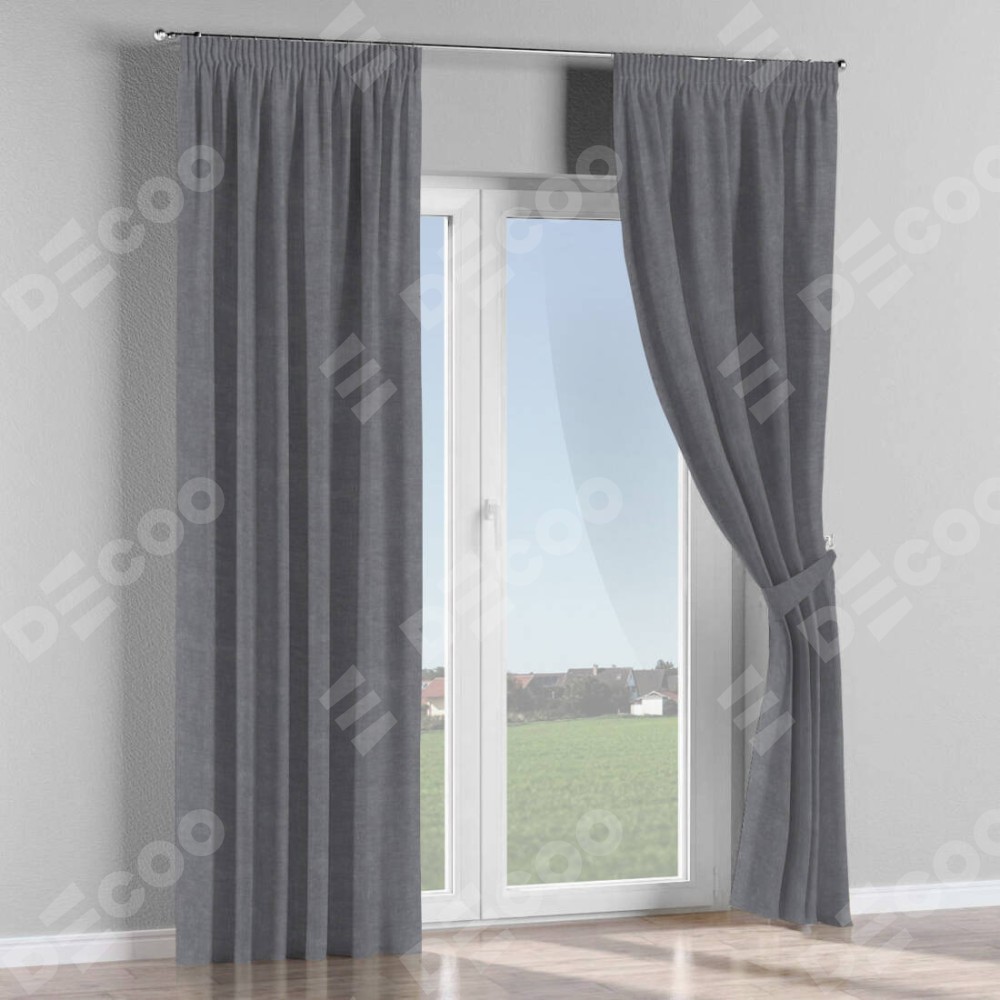 Комплект штор канвас стальной, на тесьме «Карандаш»